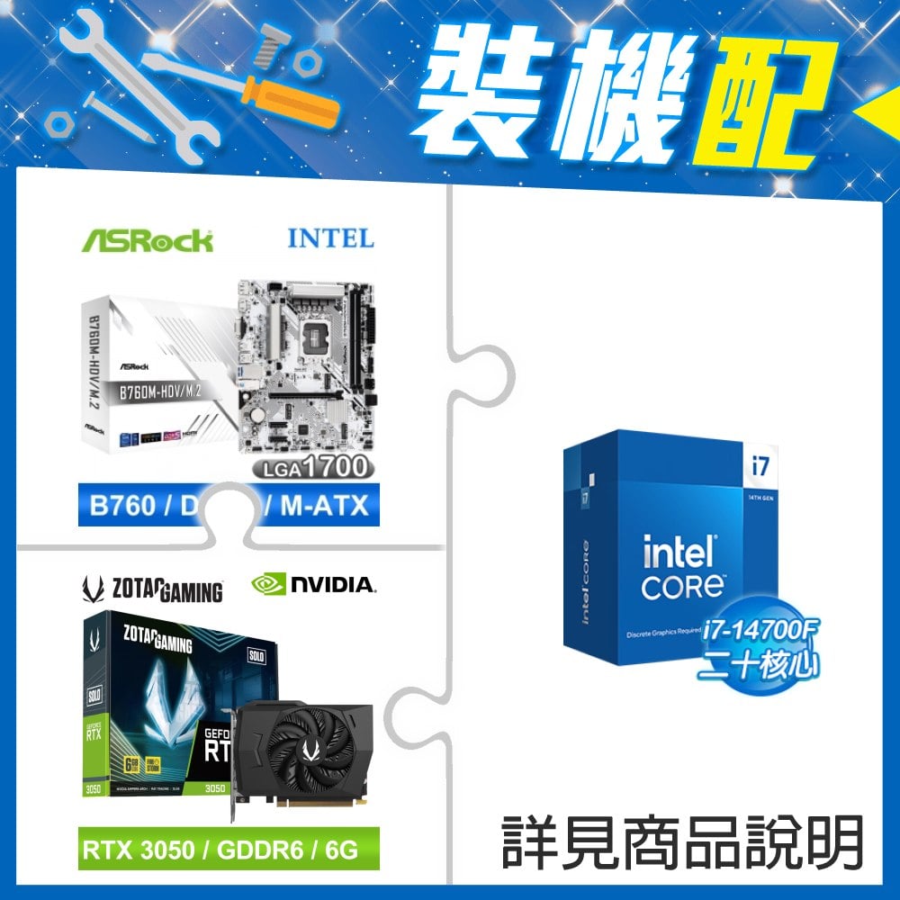☆裝機配★ i7-14700F+華擎 B760M-HDV D5 MATX主機板+ZOTAC RTX3050 6G GDDR6 Solo 顯示卡