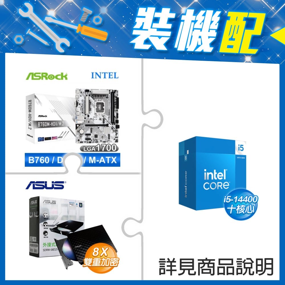 ☆裝機配★ i5-14400+華擎 B760M-HDV D5 MATX主機板+華碩 SDRW-08D2S-U 外接式燒錄機《黑》