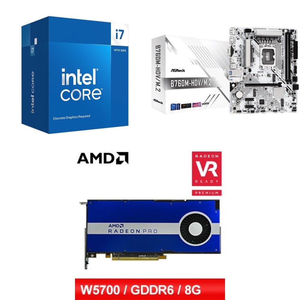 ☆裝機配★ i7-14700F+華擎 B760M-HDV D5 MATX主機板+AMD RadeonPro W5700 8G 256bit專業繪圖卡