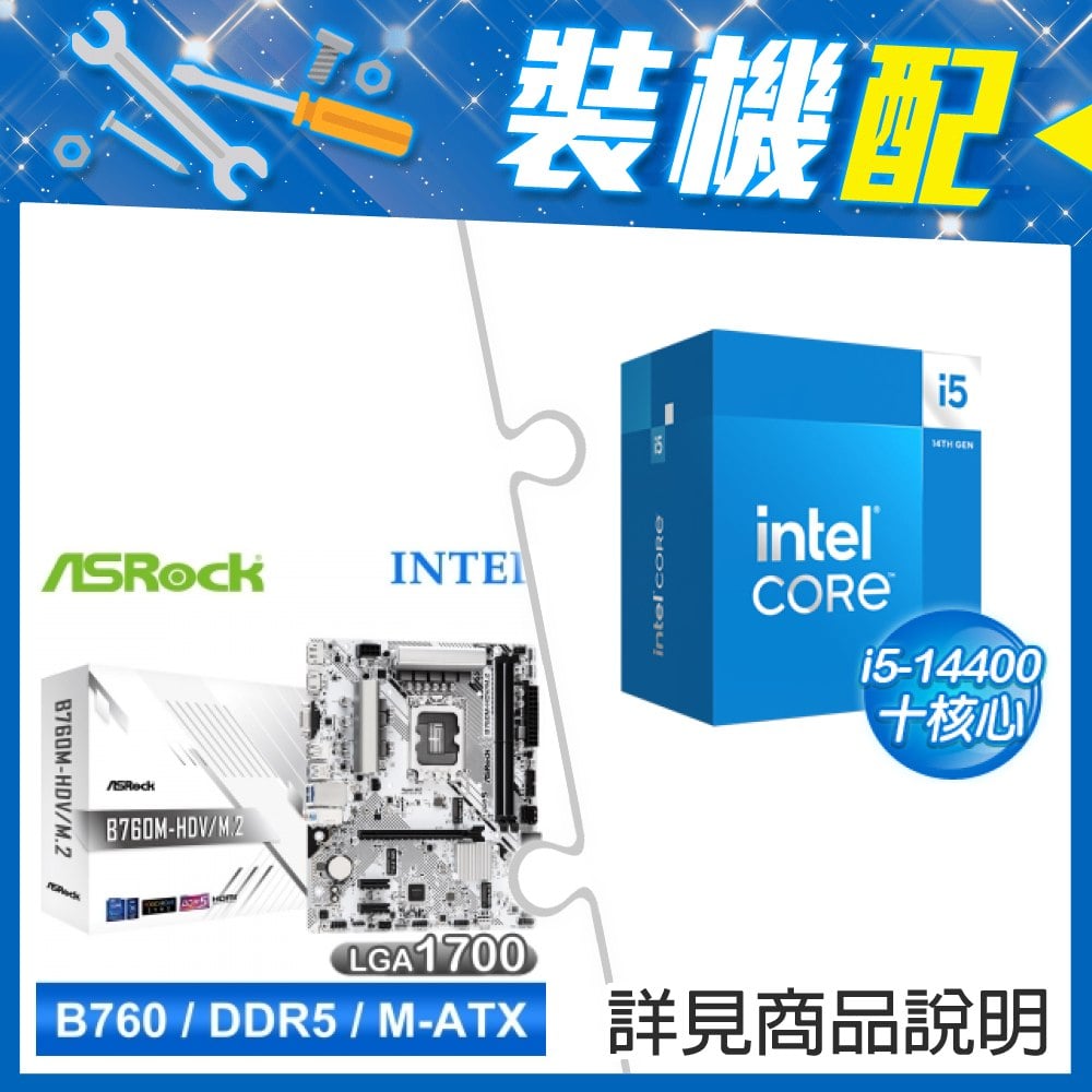 ☆裝機配★ i5-14400F+華擎 B760M-HDV D5 MATX主機板
