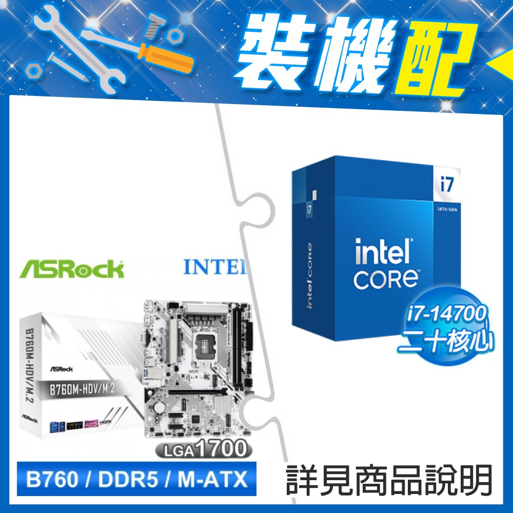 ☆裝機配★ i7-14700+華擎 B760M-HDV D5 MATX主機板