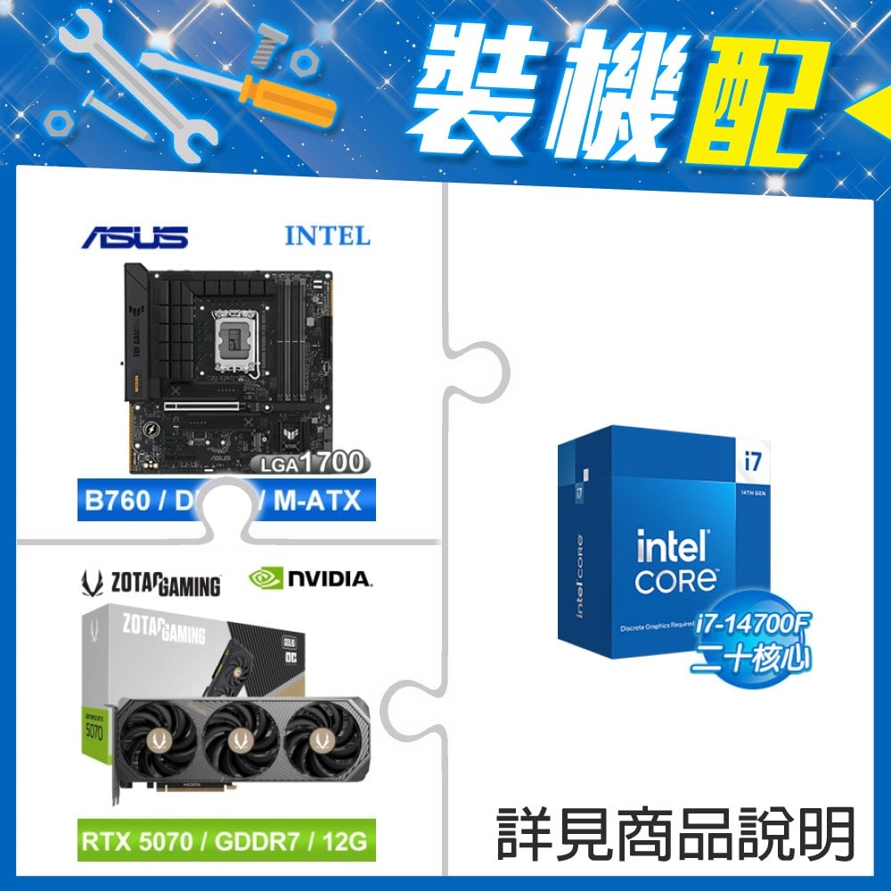 ☆裝機配★ i7-14700F+華碩 TUF GAMING B760M-PLUS WIFI II D5 MATX主機板+索泰 RTX 5070 SOLID OC 12G 顯示卡