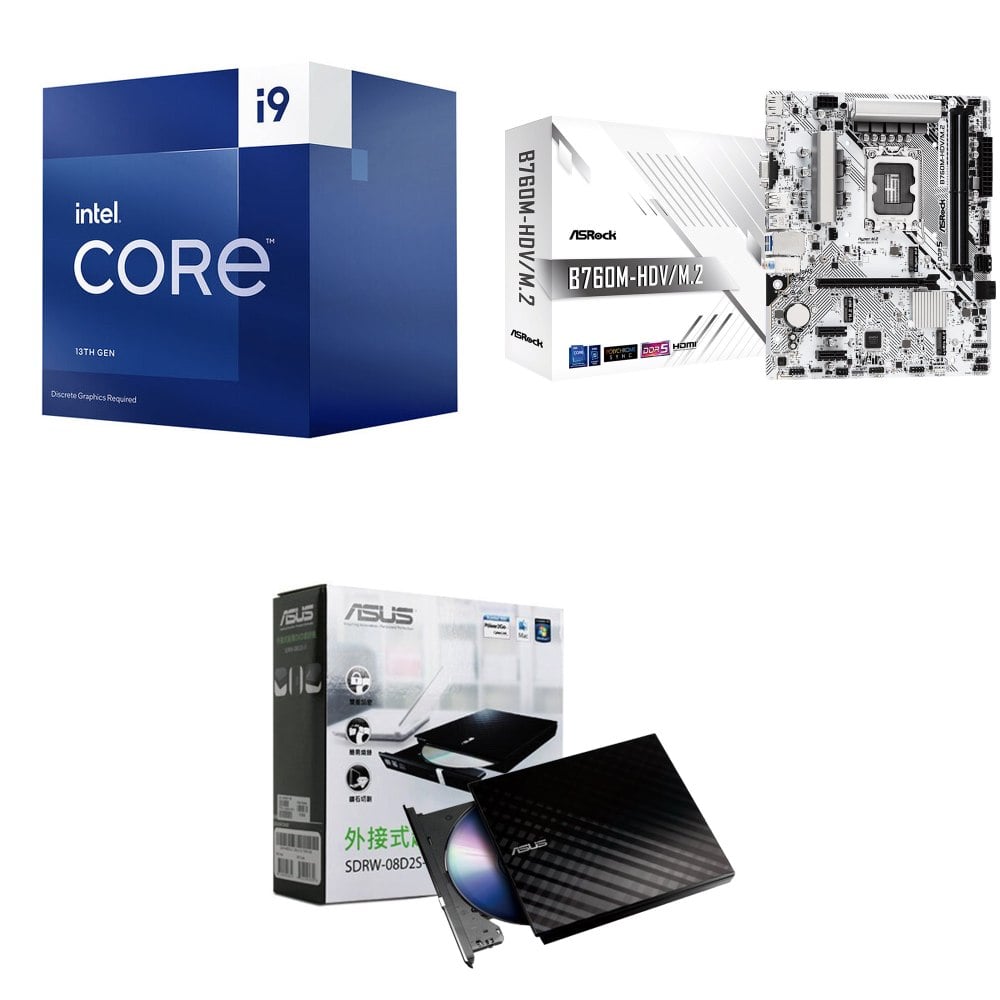☆裝機配★ i9-13900F《無內顯》+華擎 B760M-HDV D5 MATX主機板+華碩 SDRW-08D2S-U 外接式燒錄機《黑》