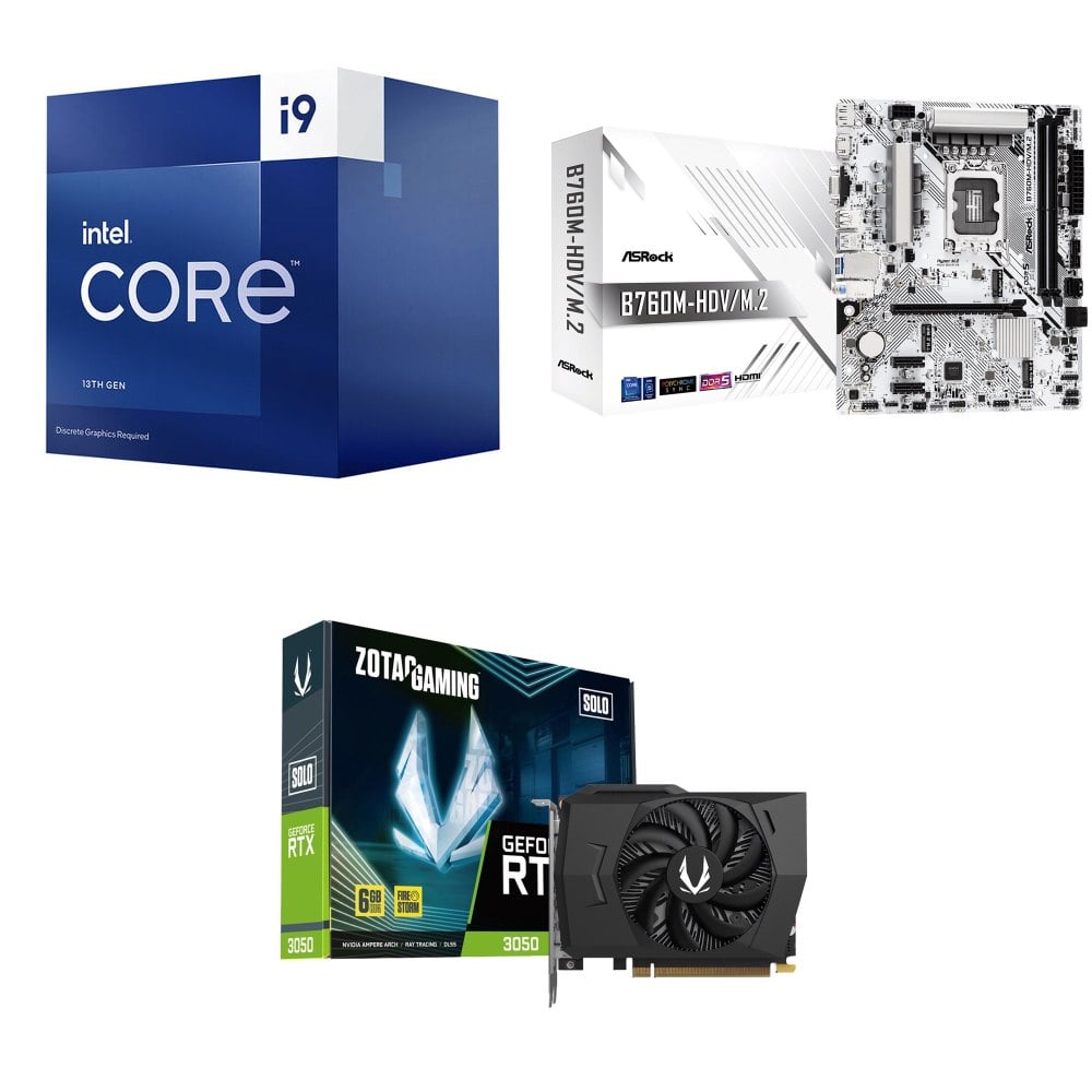 ☆裝機配★ i9-13900F《無內顯》+華擎 B760M-HDV D5 MATX主機板+ZOTAC RTX3050 6G GDDR6 Solo 顯示卡