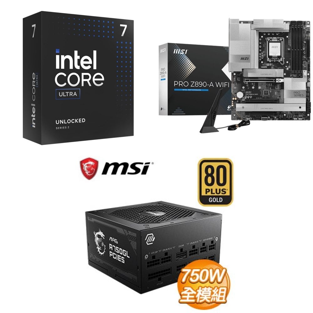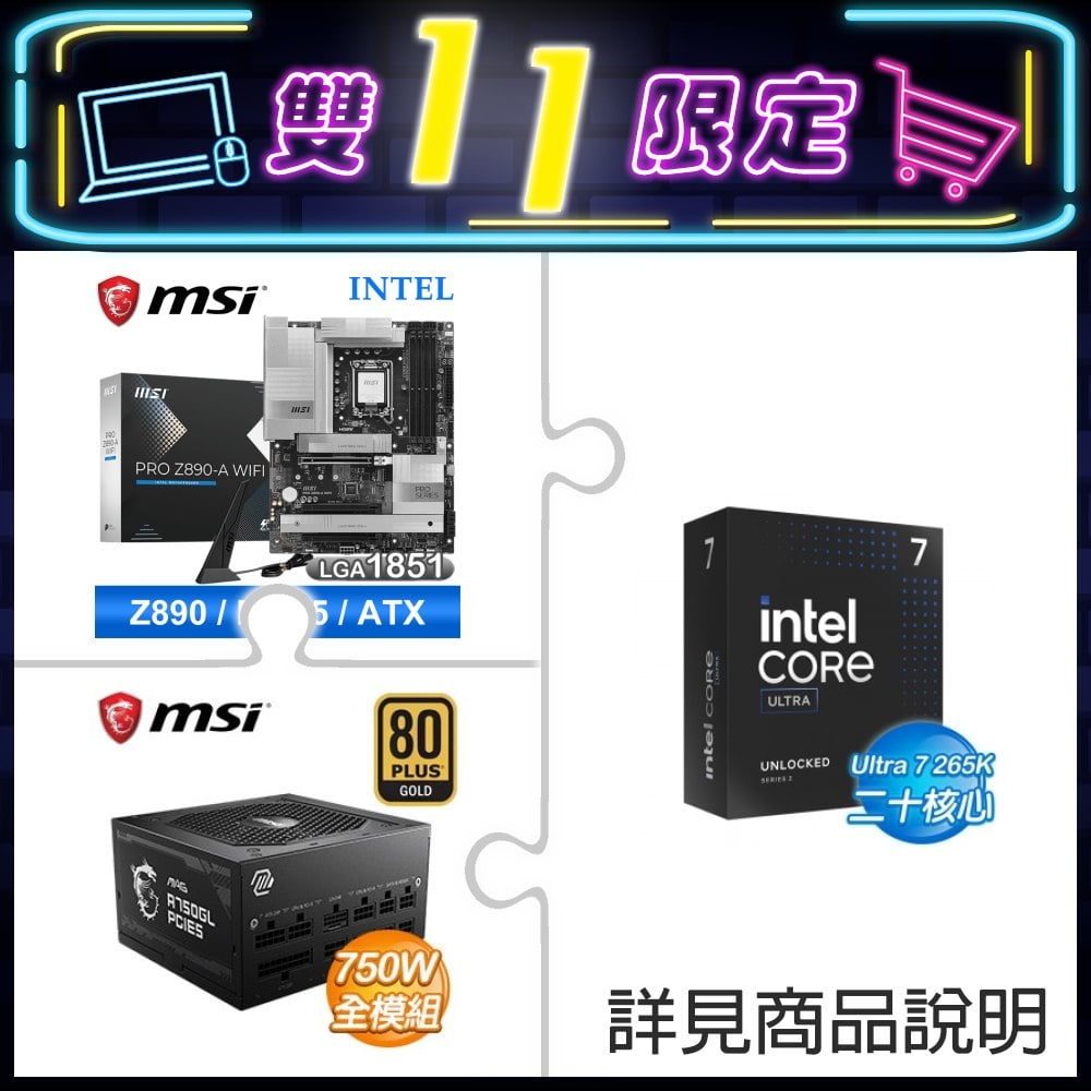 ☆期間限定★ Intel Core Ultra 7 265K+微星 PRO Z890-A WIFI D5 ATX主機板 ★送微星 MAG A750GL PCIE5 750W 金牌 全模組 ATX3.0電源供應器