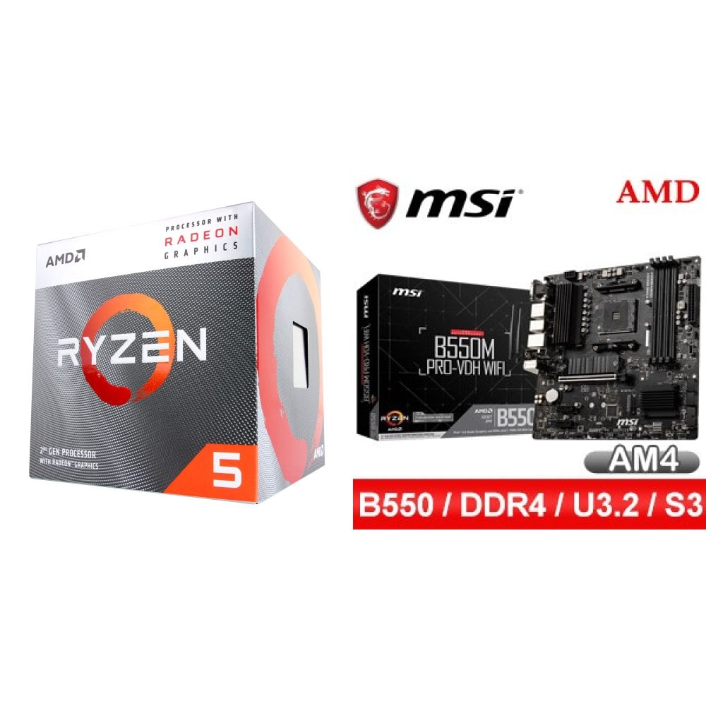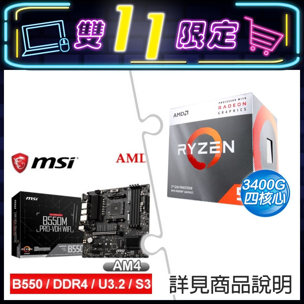 ☆期間限定★ AMD Ryzen 5 3400G SR1+微星 B550M PRO-VDH WIFI M-ATX主機板