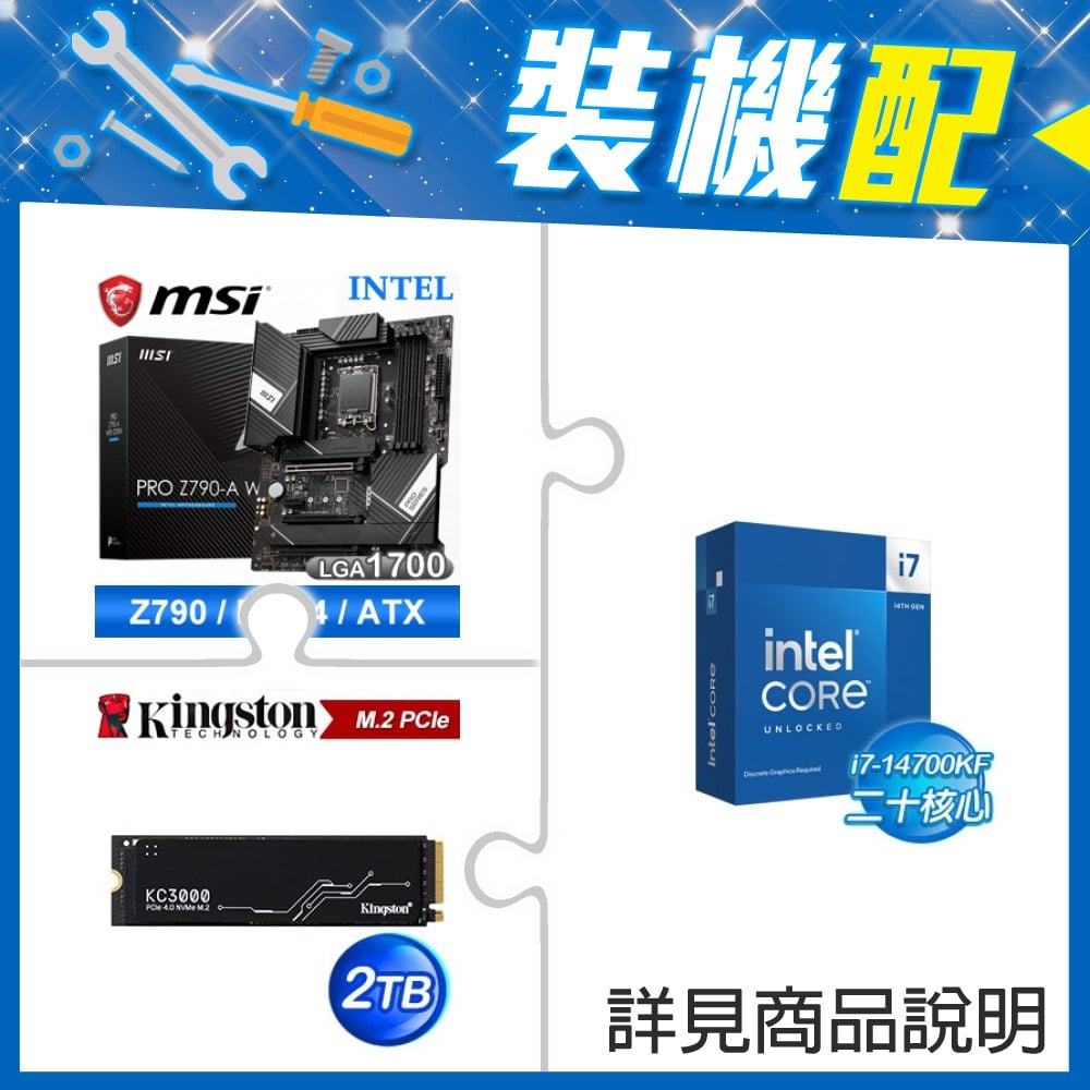 ☆裝機配★ i7-14700KF+微星 PRO Z790-A WIFI DDR4 ATX主機板+金士頓 KC3000 2TB PCIe 4.0 NVMe M.2 SSD