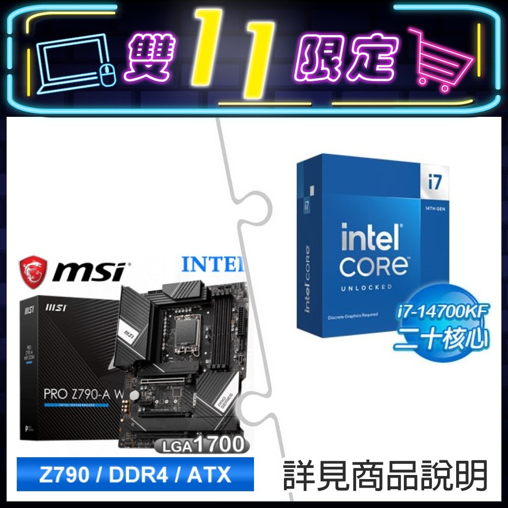 ☆裝機配★ i7-14700KF+微星 PRO Z790-A WIFI DDR4 ATX主機板