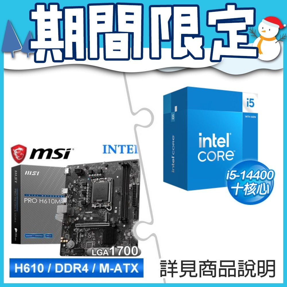 ☆期間限定★ i5-14400+微星 PRO H610M-S D4 M-ATX主機板(X3)