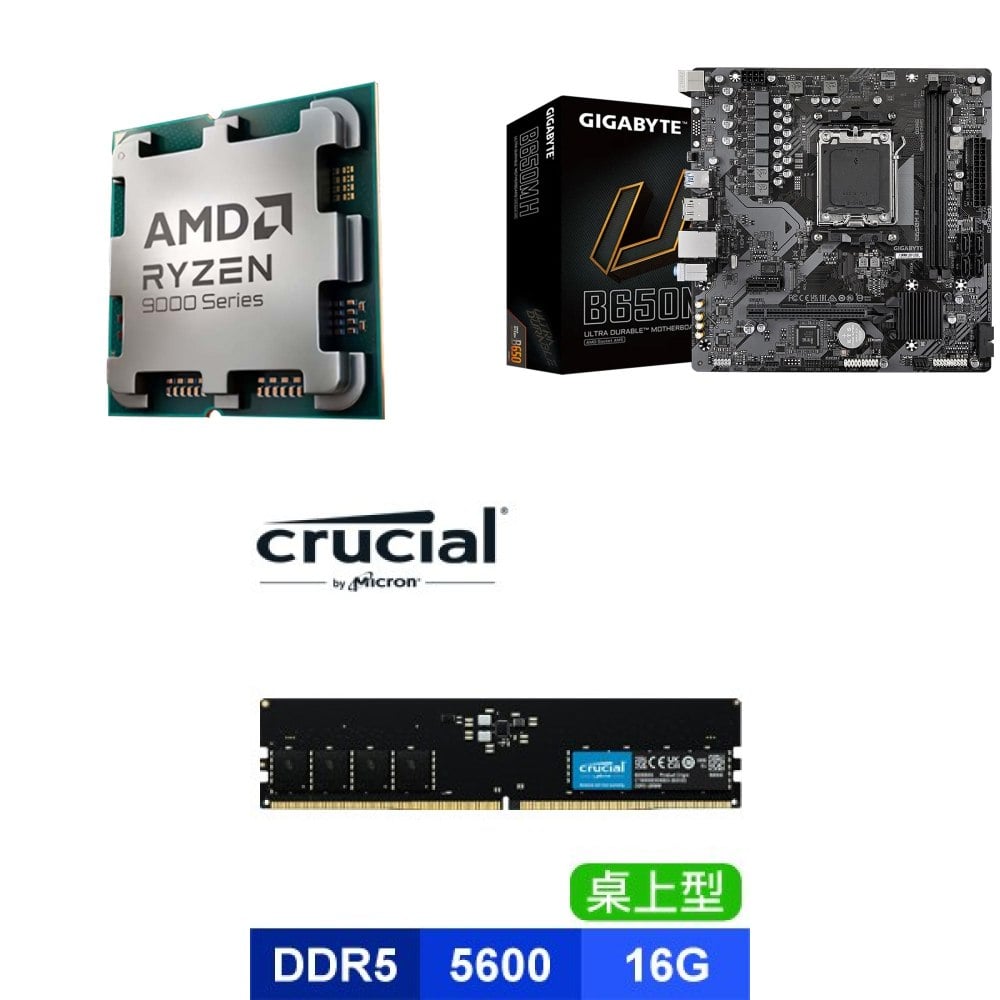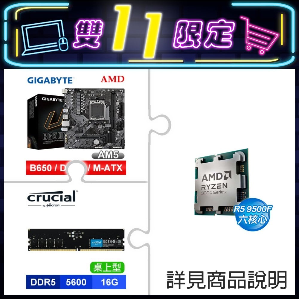 ☆期間限定★ AMD R5 9500F MPK+技嘉 B650M H M-ATX主機板+美光 Crucial DDR5-5600 16G 記憶體