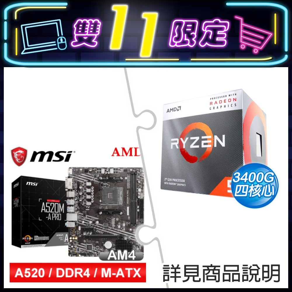 ☆裝機配★ AMD R5 3400G+微星 A520M-A PRO M-ATX主機板