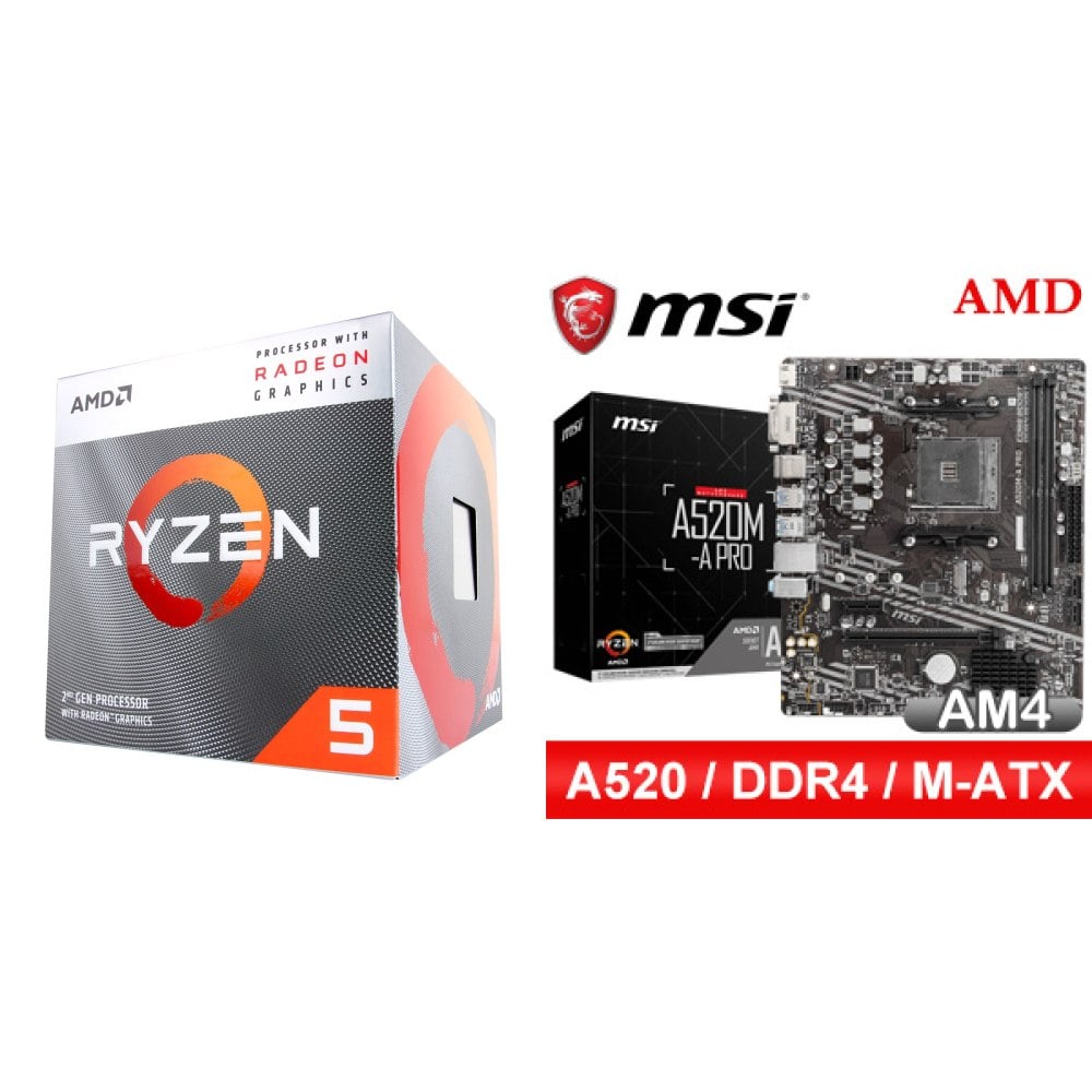 ☆期間限定★ AMD Ryzen 5 3400G SR1+微星 A520M-A PRO M-ATX主機板