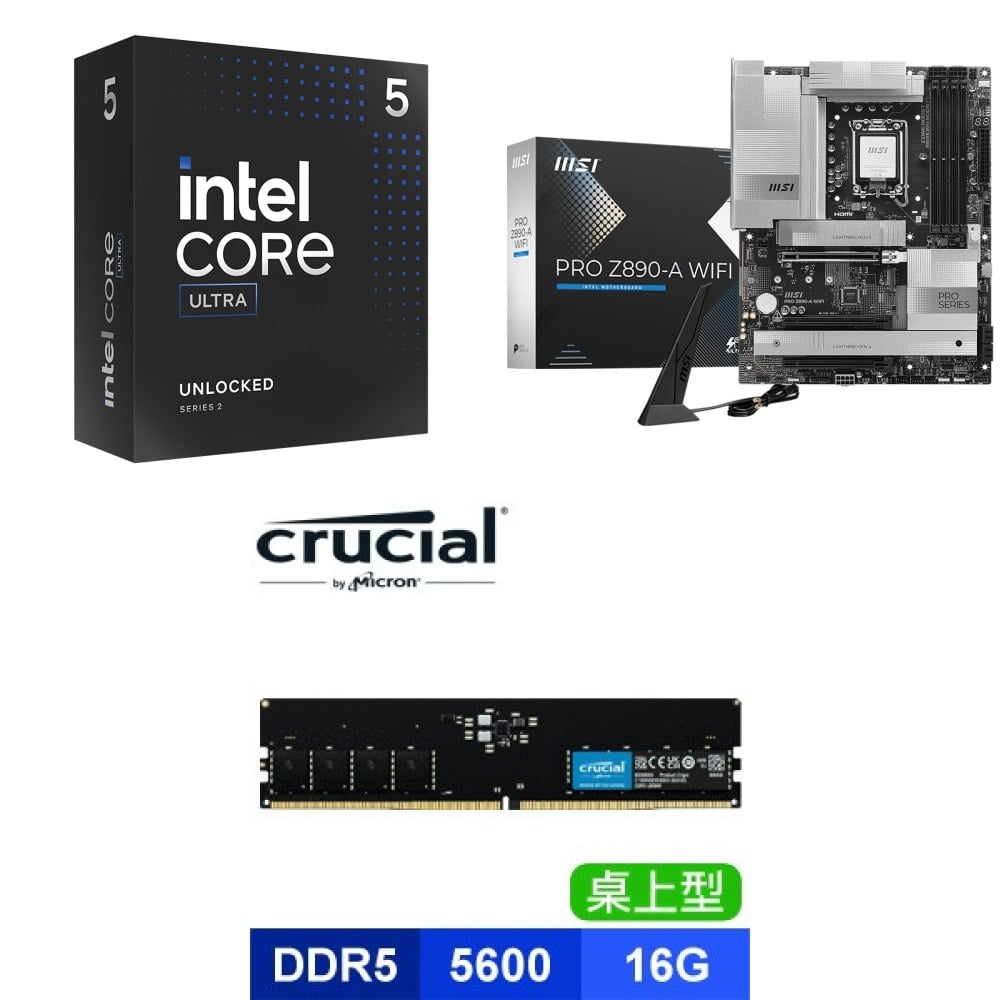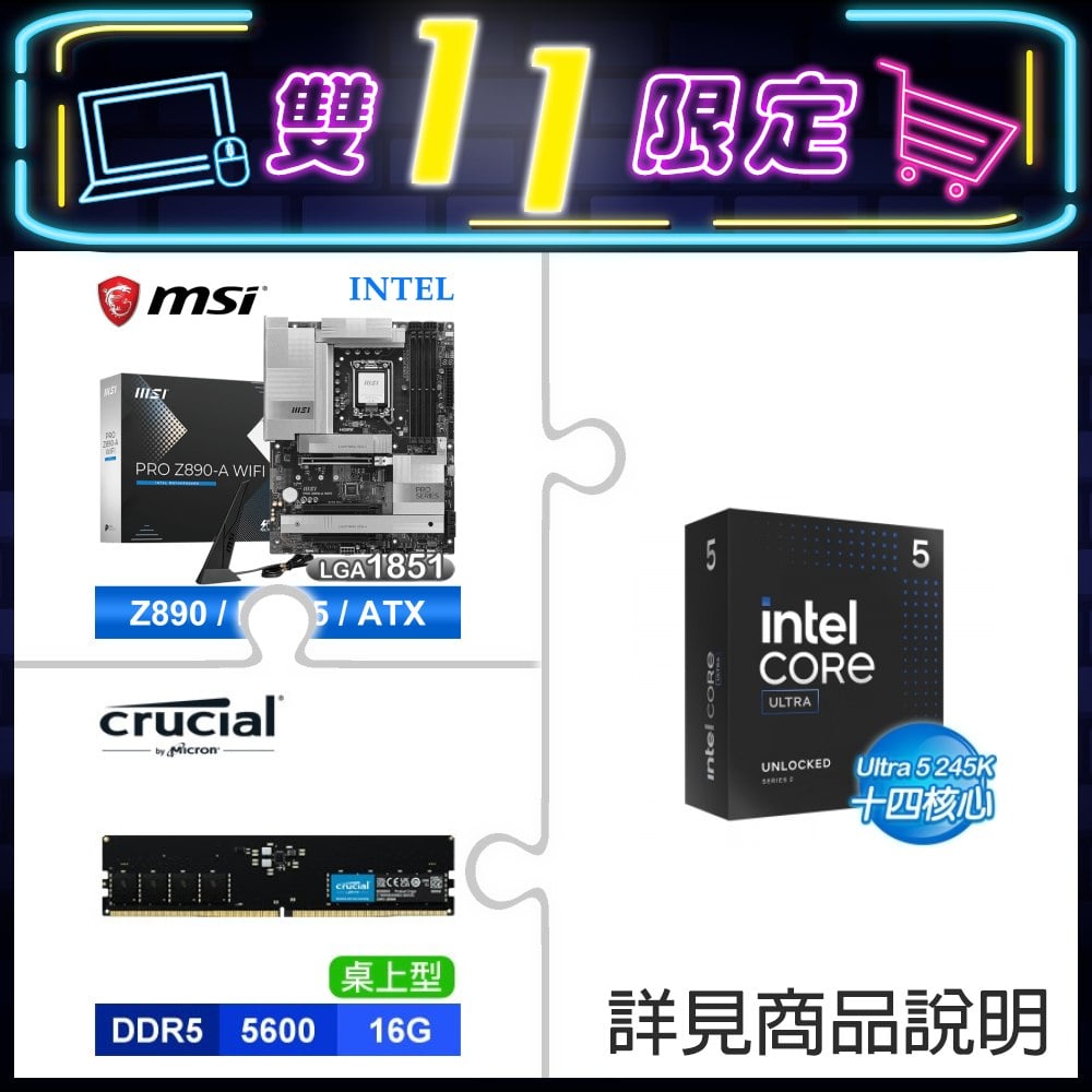 ☆期間限定★ Intel Core Ultra 5 245K+微星 PRO Z890-A WIFI D5 ATX主機板 ★送美光 Crucial DDR5-5600 16G 記憶體