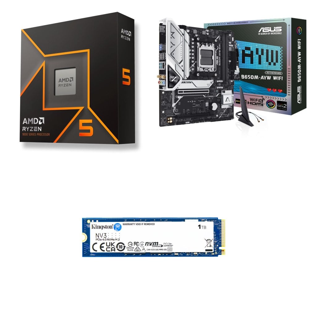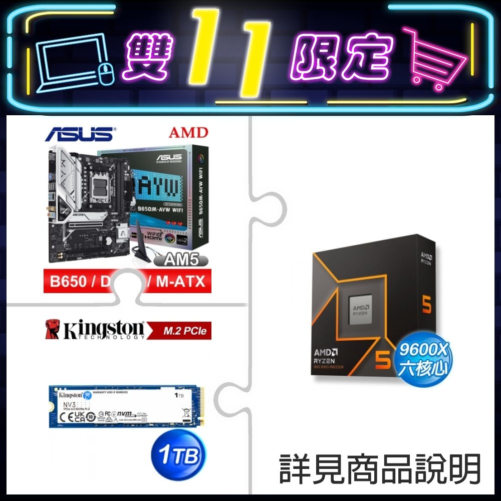 ☆裝機配★ AMD R5 9600X+華碩 B650M-AYW WIFI MATX主機板+金士頓 NV3 1TB M.2 PCIe SSD