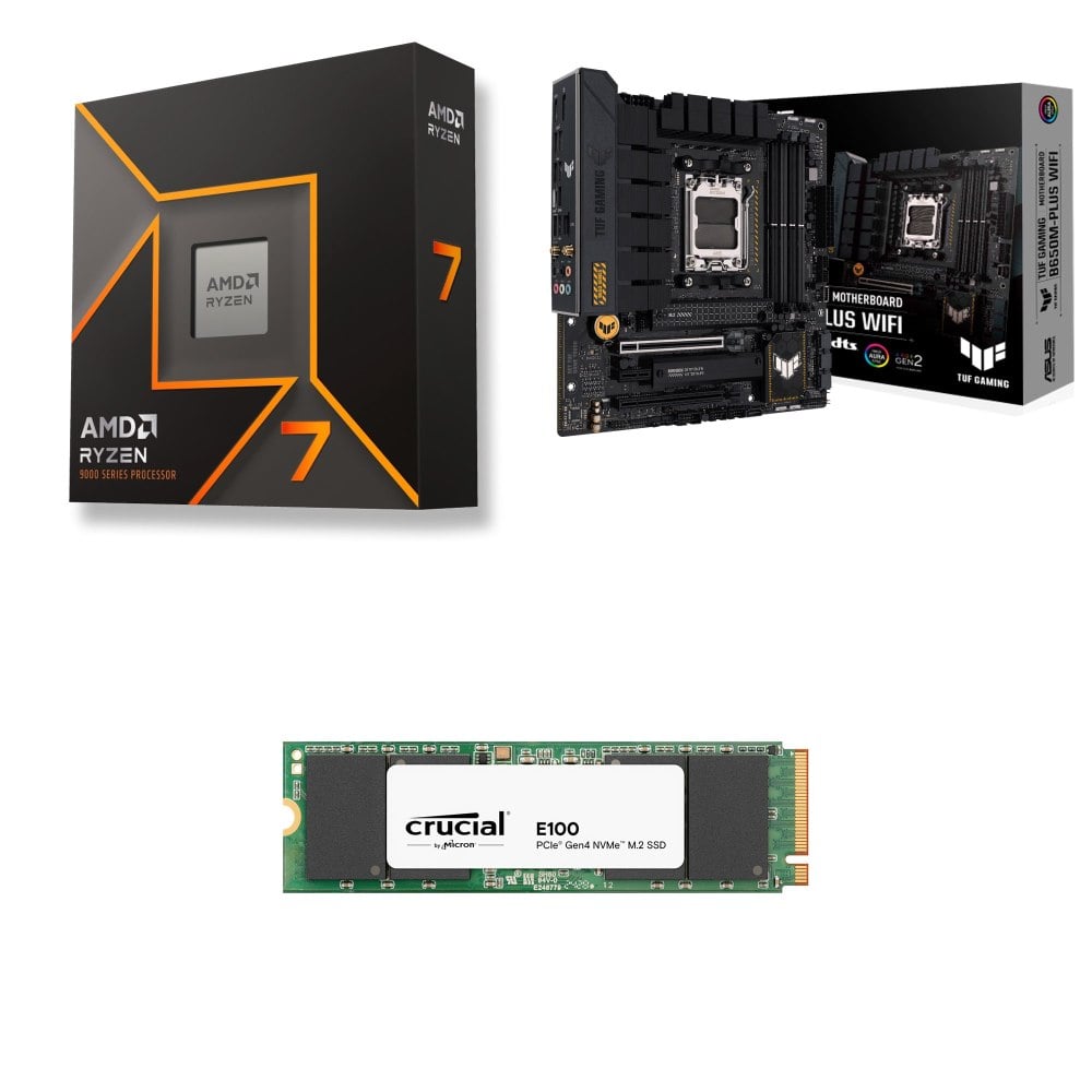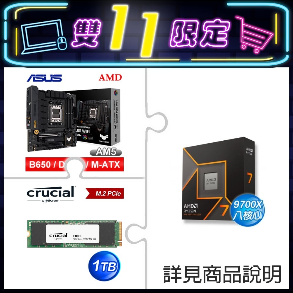 ☆期間限定★ AMD R7 9700X+華碩 TUF GAMING B650M-PLUS WIFI M-ATX主機板+美光 Crucial E100 1TB M.2 PCIe SSD(散裝)