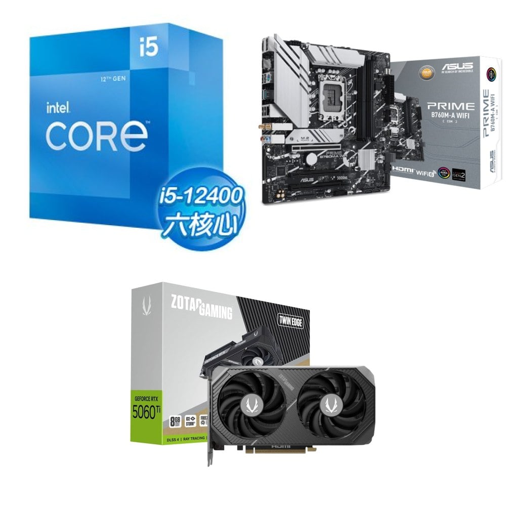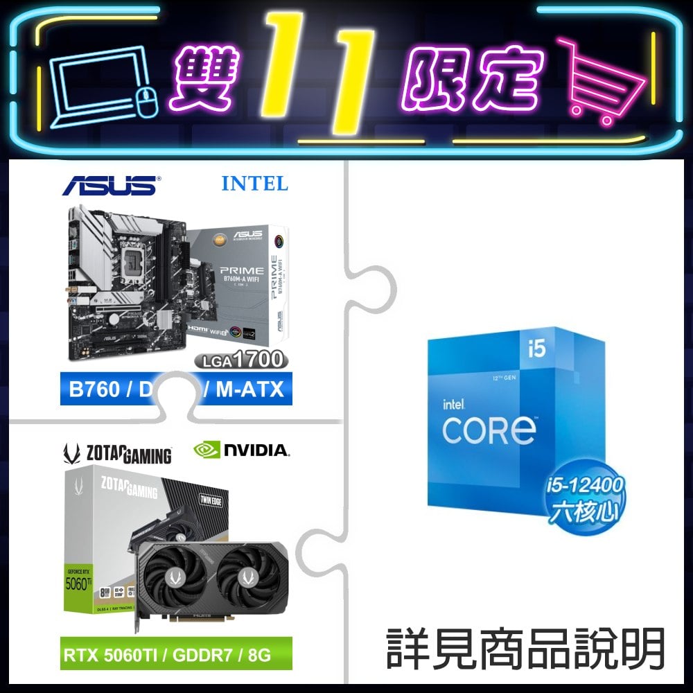 ☆期間限定★ i5-12400+華碩 PRIME B760M-A WIFI-CSM D5 M-ATX主機板+索泰 RTX 5060 TI 8GB Twin Edge 顯示卡 ★送ZOTAC GAMING 桌面滑鼠墊