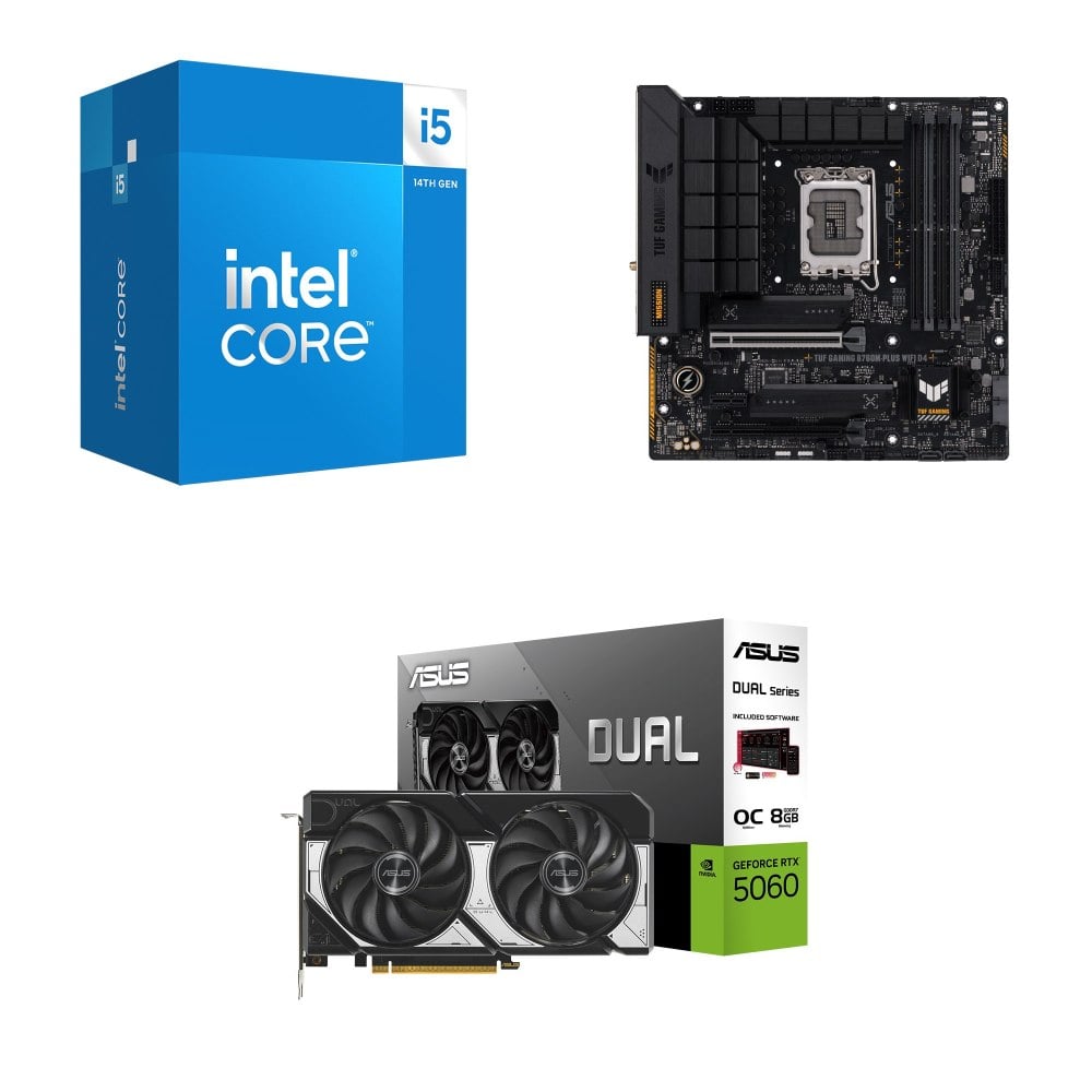 ☆期間限定★ i5-14400+華碩 TUF B760M-PLUS WIFI D4 M-ATX主機板+華碩 DUAL-RTX5060-O8G 顯示卡