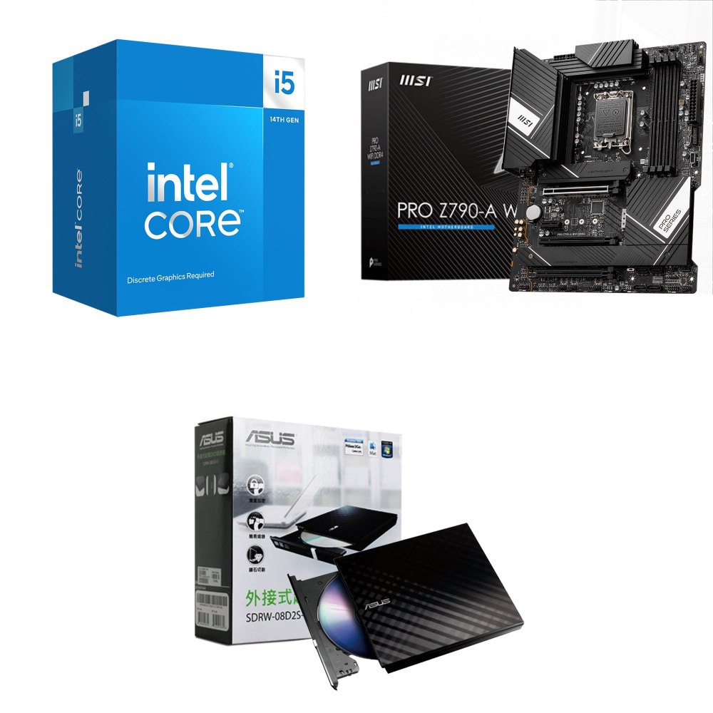 ☆期間限定★ i5-14400F+微星 PRO Z790-A WIFI D4 ATX主機板 ★送華碩 外接燒錄器《黑》(SDRW-08D2S-U)