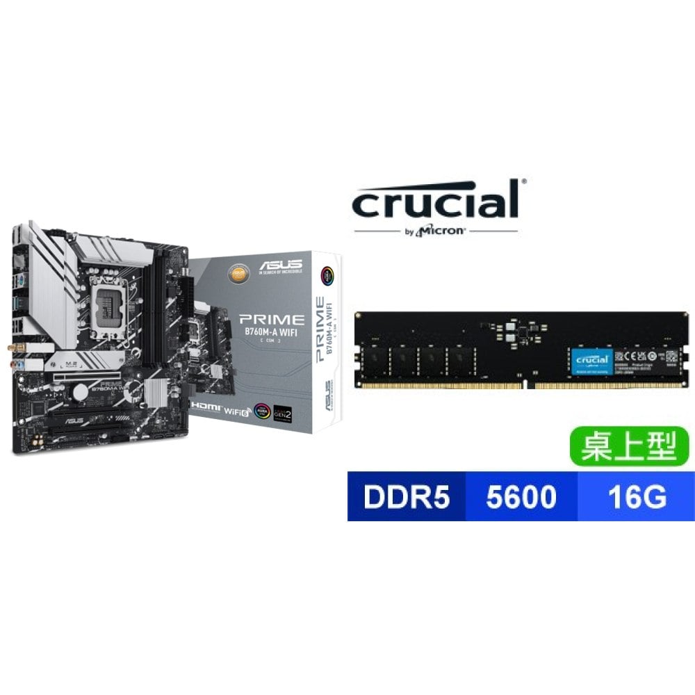 ☆期間限定★ 華碩 PRIME B760M-A WIFI-CSM D5 M-ATX主機板+美光 Crucial DDR5-5600 16G 記憶體
