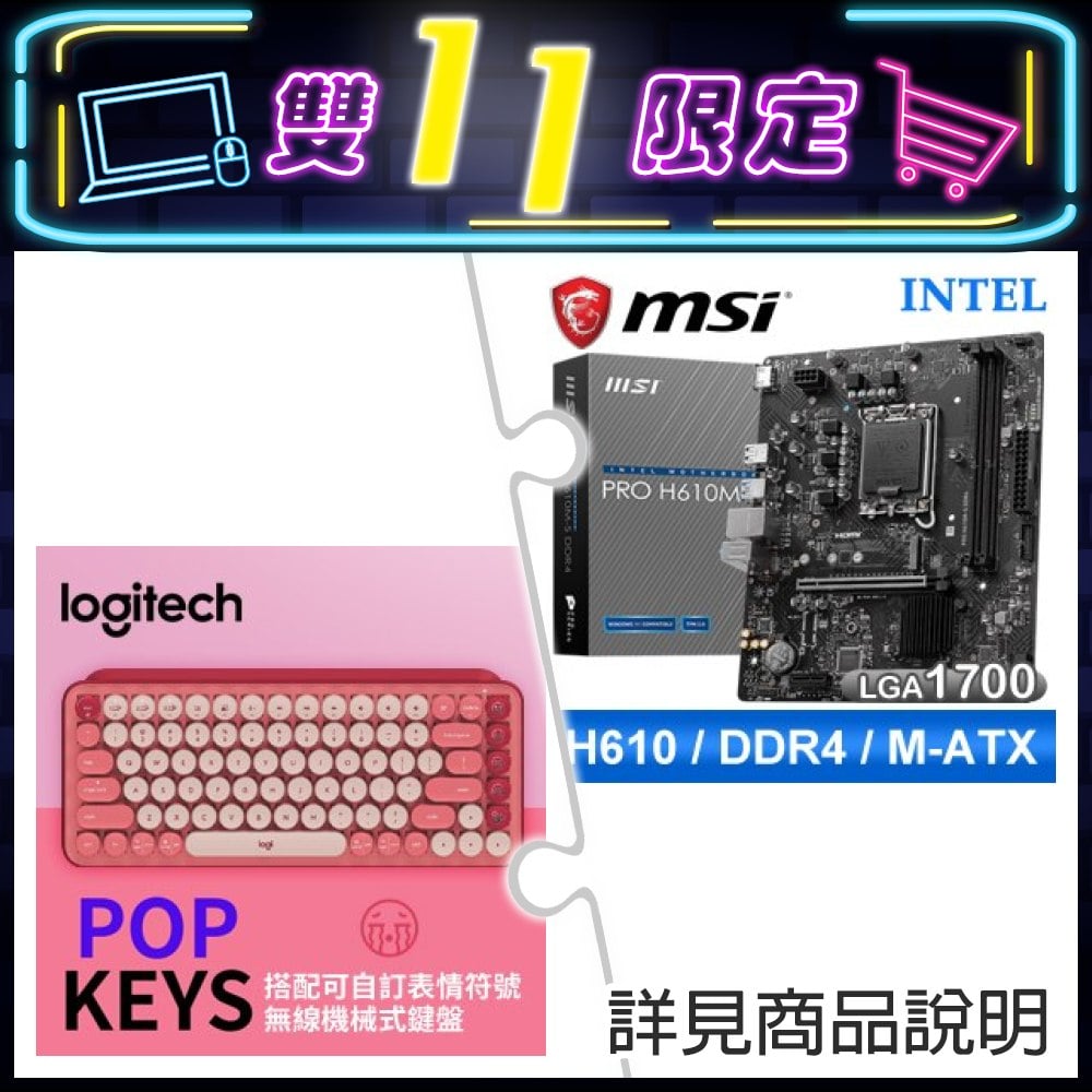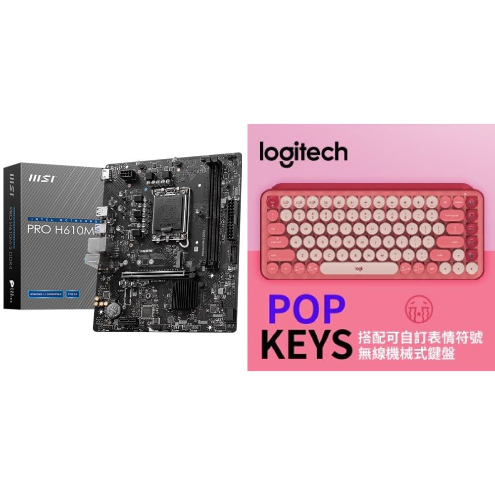 ☆期間限定★ 微星 PRO H610M-S D4 M-ATX主機板+羅技 POP KEYS 無線藍芽機械鍵盤《魅力桃》