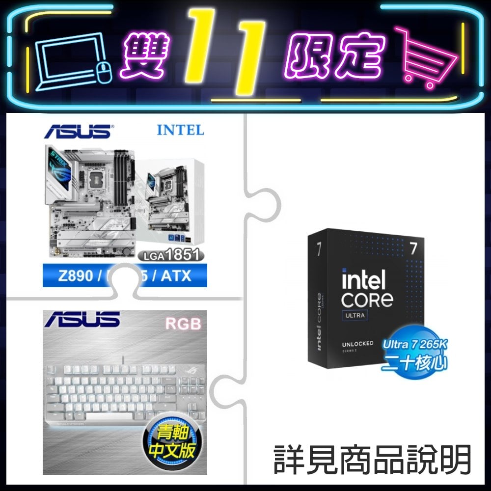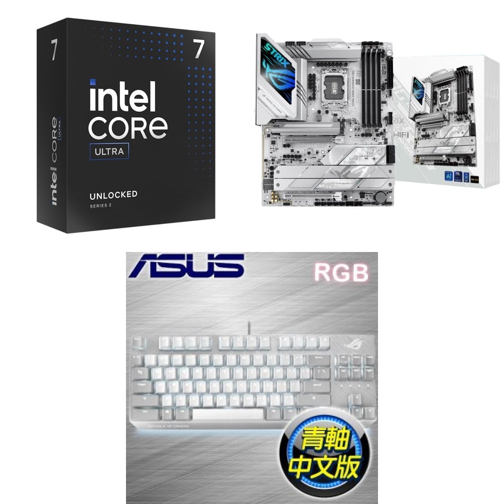 ☆期間限定★ Intel Core Ultra 7 265K+華碩 ROG STRIX Z890-A GAMING WIFI D5 ATX主機板+華碩 ROG Strix Scope NX TKL 青軸中文 80%機械式鍵盤《月光白》