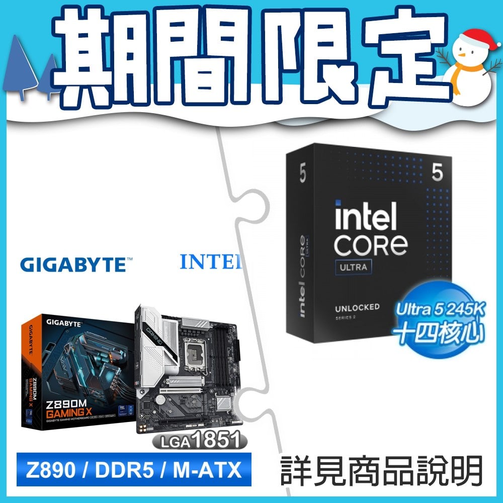 ☆期間限定★ Intel Core Ultra 5 245K+技嘉 Z890M GAMING X D5 ATX主機板 ★送羅技MX KEYS Mini無線藍芽背光鍵盤 玫瑰粉