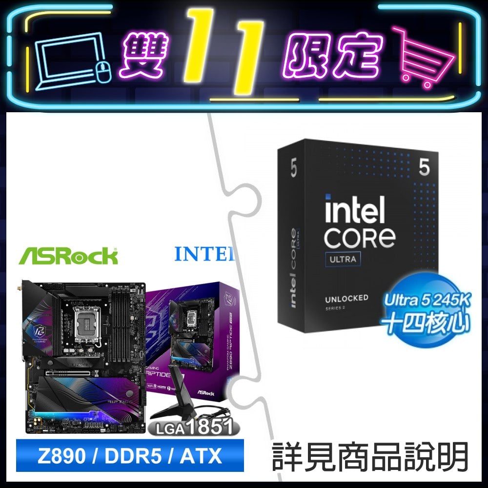 ☆期間限定★ Intel Core Ultra 5 245K+華擎 Z890 Riptide WiFi D5 ATX主機板 ★送美光 Crucial PRO DDR5-6000 32G (16G*2)黑 記憶體
