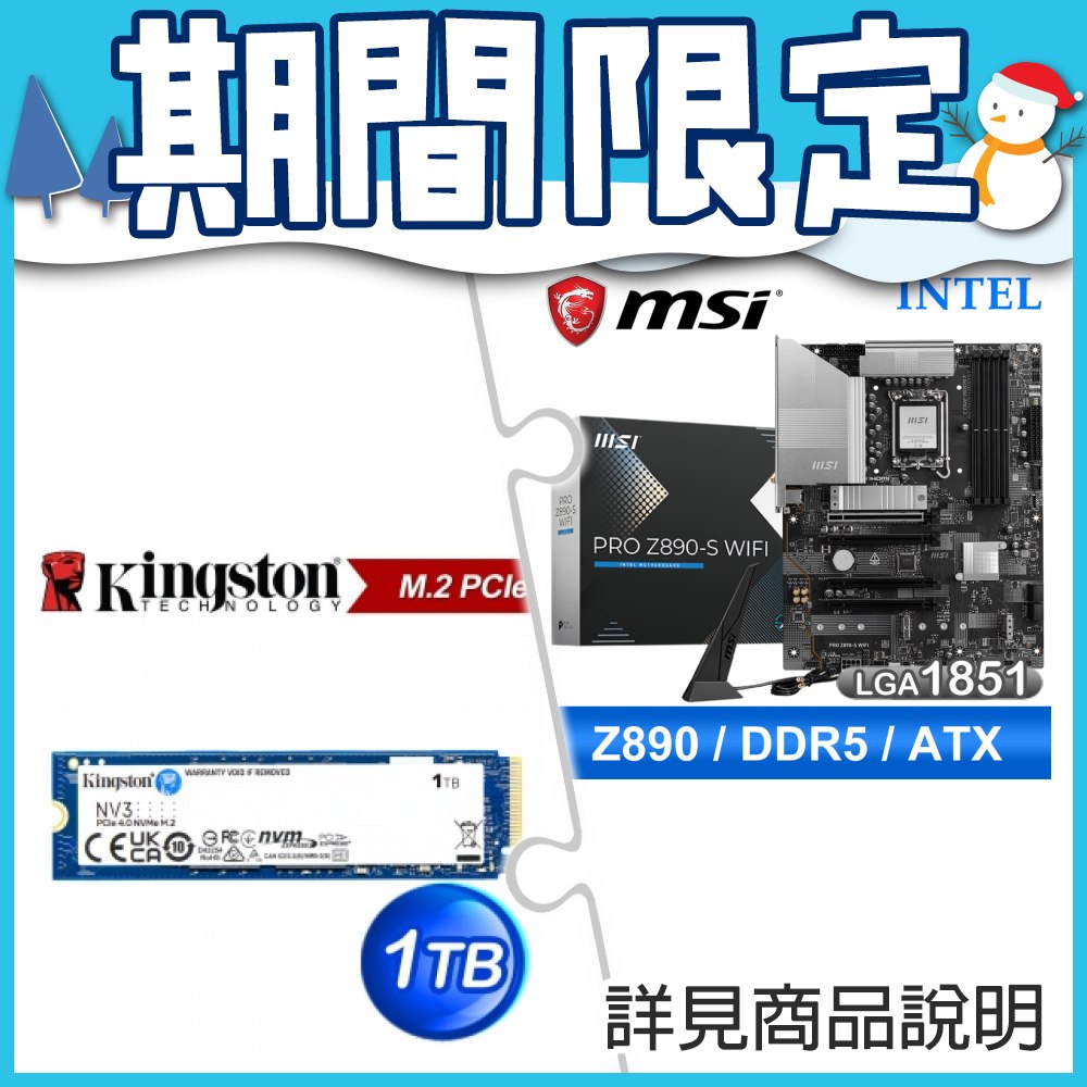 ☆裝機配★ Core U5 245K+微星 PRO Z890-S WIFI D5 ATX主機板+金士頓 NV3 1TB M.2 PCIe SSD