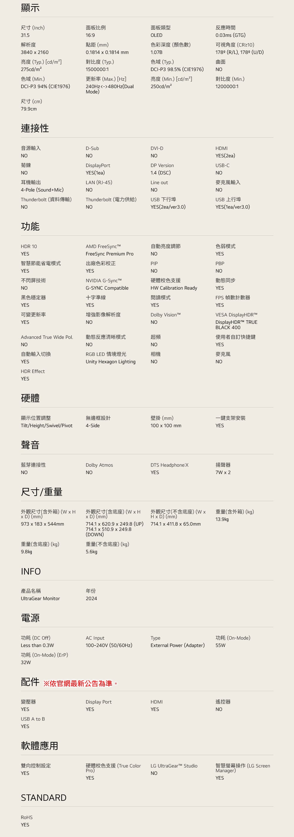 - 32" 4K UHD (3840 x 2160) OLED 高畫質螢幕
