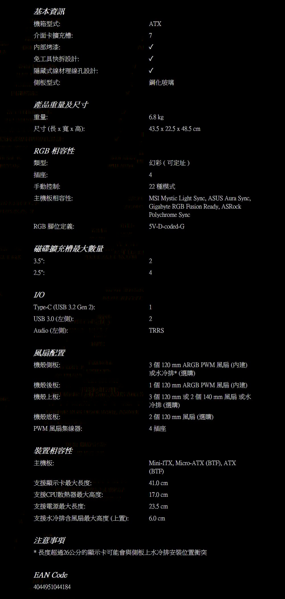 - 可容納大量硬體, 支援410mm 顯卡與 170mm 塔散