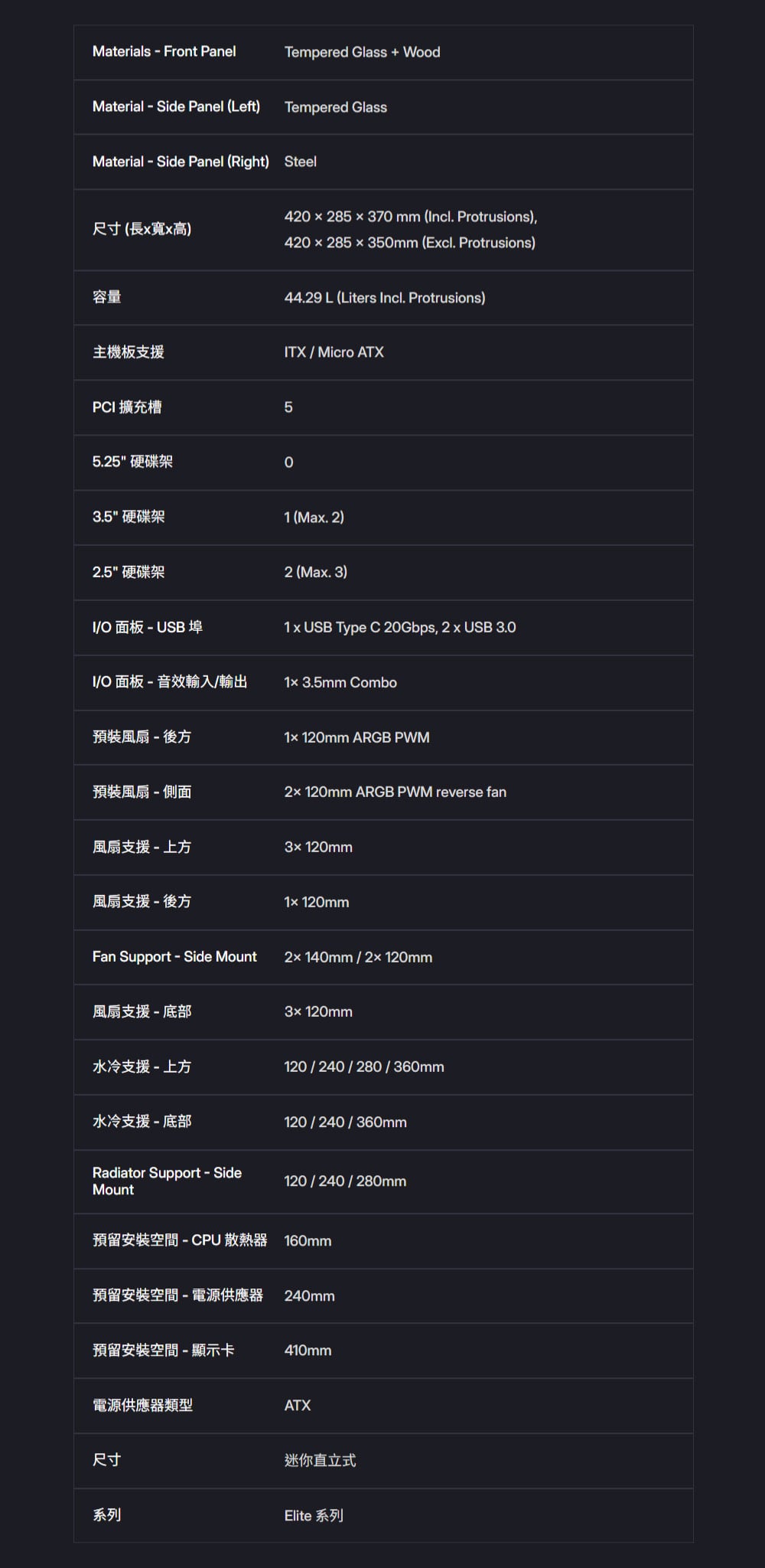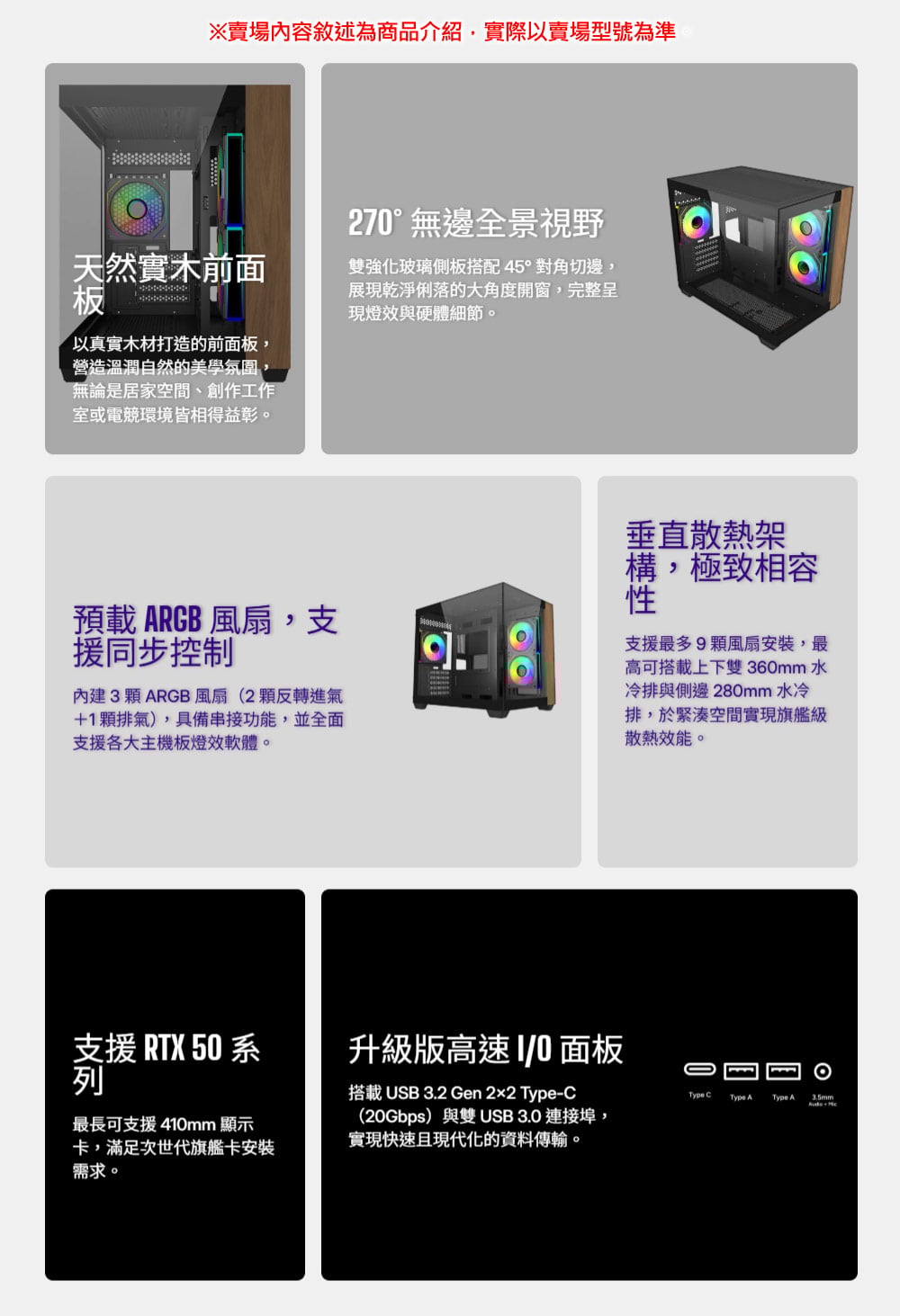 - 可搭載上下雙 360mm 水冷排與側邊 280mm 水冷排