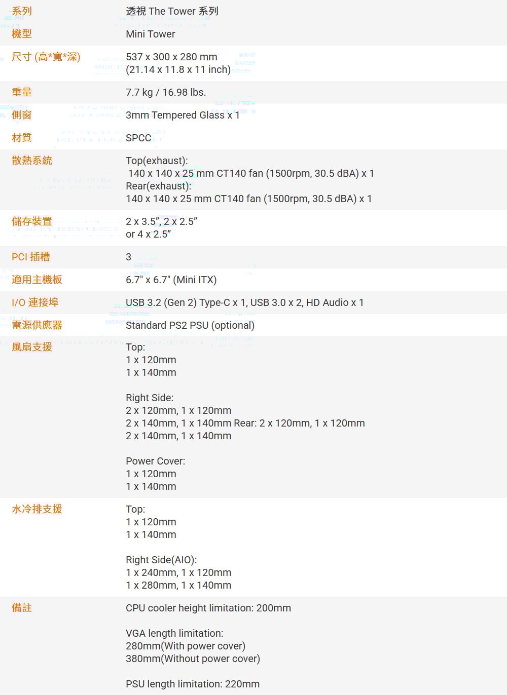 Thermaltake 曜越【透視 The Tower 200】全景直立式 ITX機殼《黑》(顯卡長38/CPU高20)