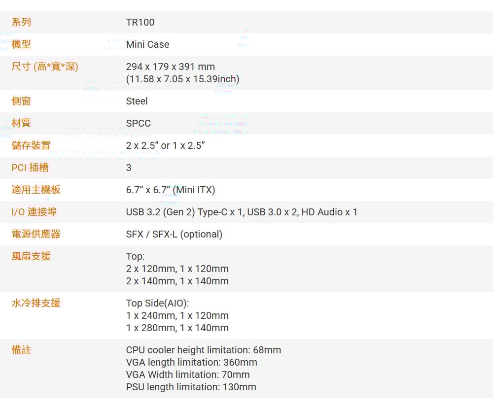 Thermaltake 曜越【TR100 Mini】雙艙 SFX電源 ITX機殼《黑》(顯卡36)
