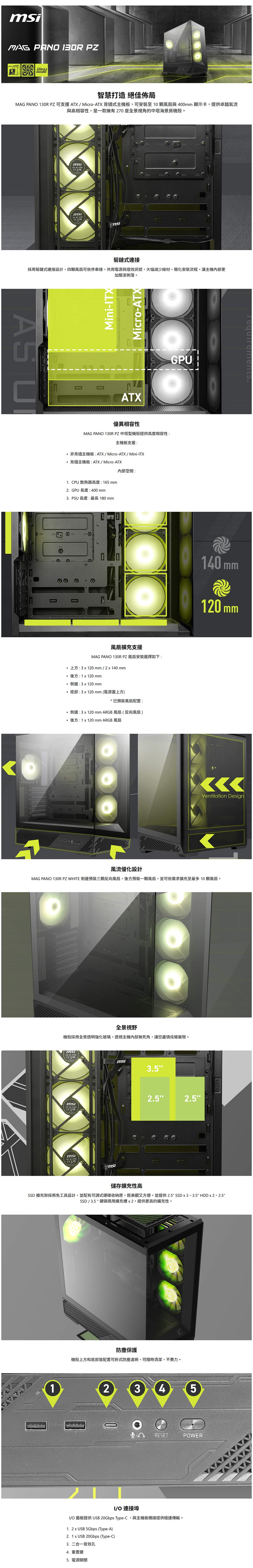 MSI 微星【MAG PANO 130R PZ WHITE】全景玻璃透側 支援背插主機板 ATX機殼《白》(顯卡40/CPU高16.5)