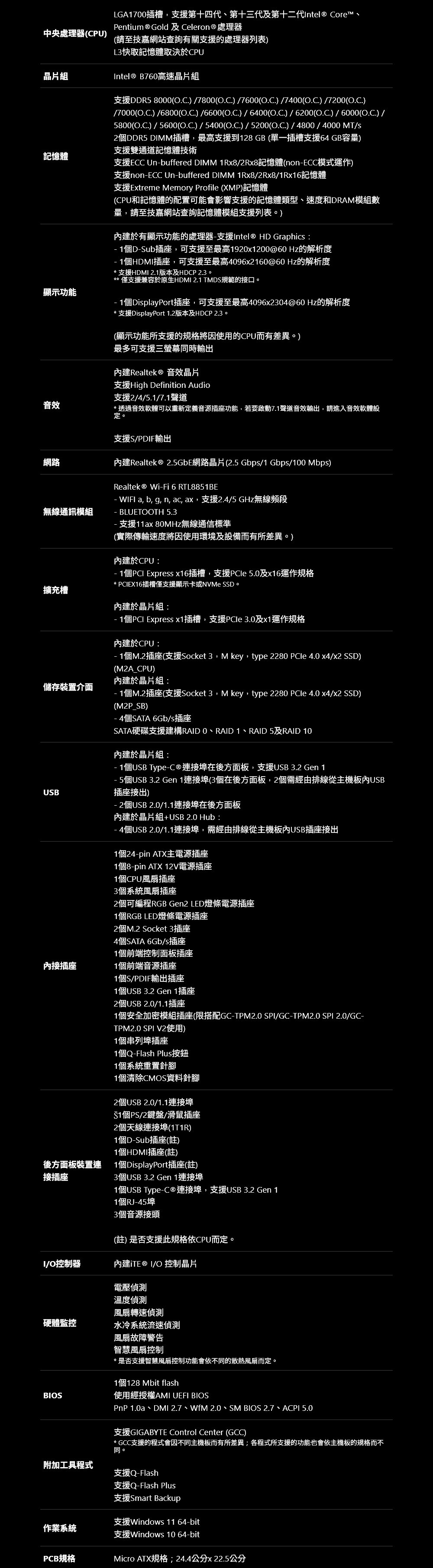 Gigabyte 技嘉 B760M GAMING WIFI6 PLUS GEN5 D5 LGA1700主機板(MATX/3+2年保)