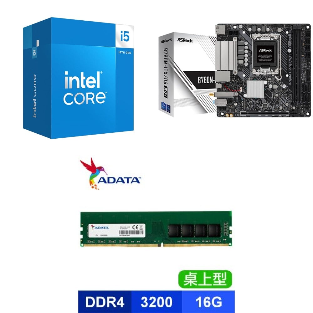☆期間限定★ i5-14400+華擎 B760M-ITX/D4 WiFi ITX主機板+威剛 DDR4-3200 16G 記憶體