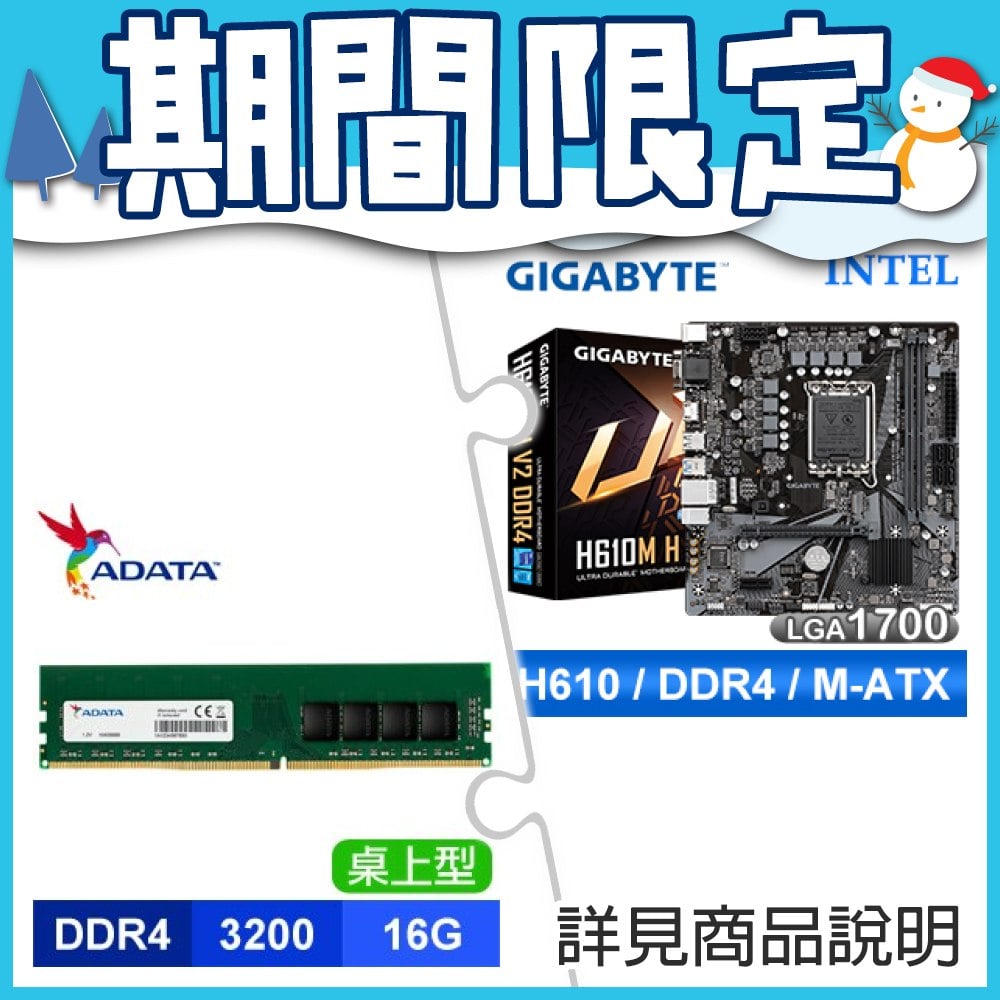 ☆期間限定★ 技嘉 H610M H V2 D4 M-ATX主機板+威剛 DDR4-3200 16G 記憶體