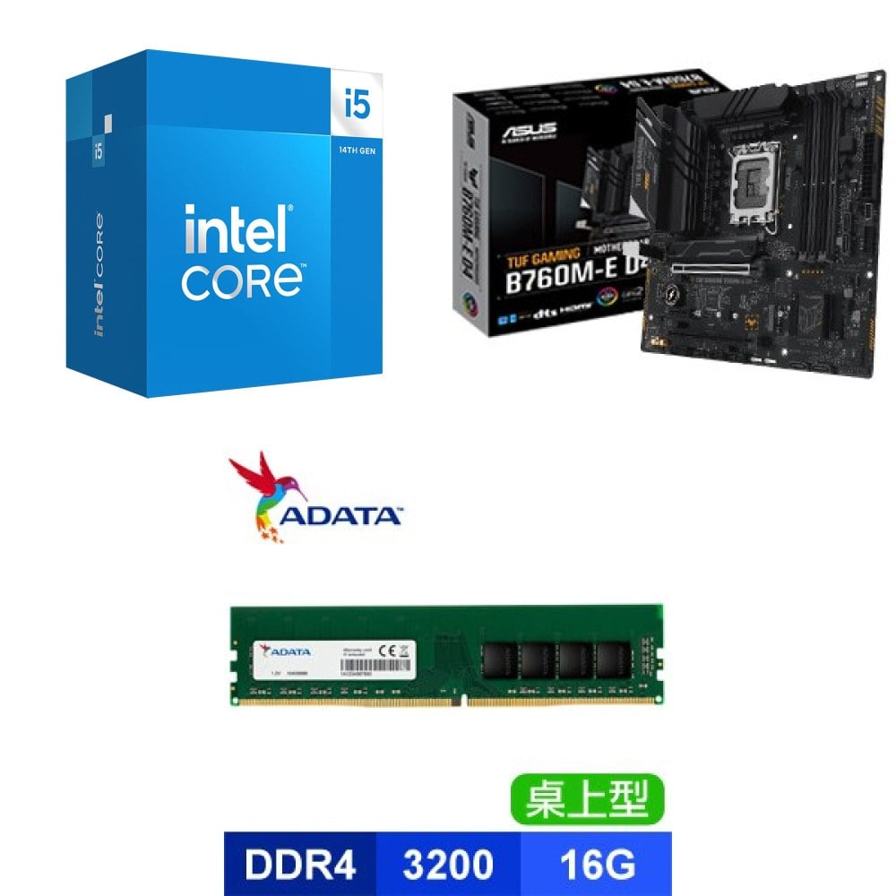☆期間限定★ i5-14400+華碩 TUF GAMING B760M-E D4 M-ATX主機板+威剛 DDR4-3200 16G 記憶體