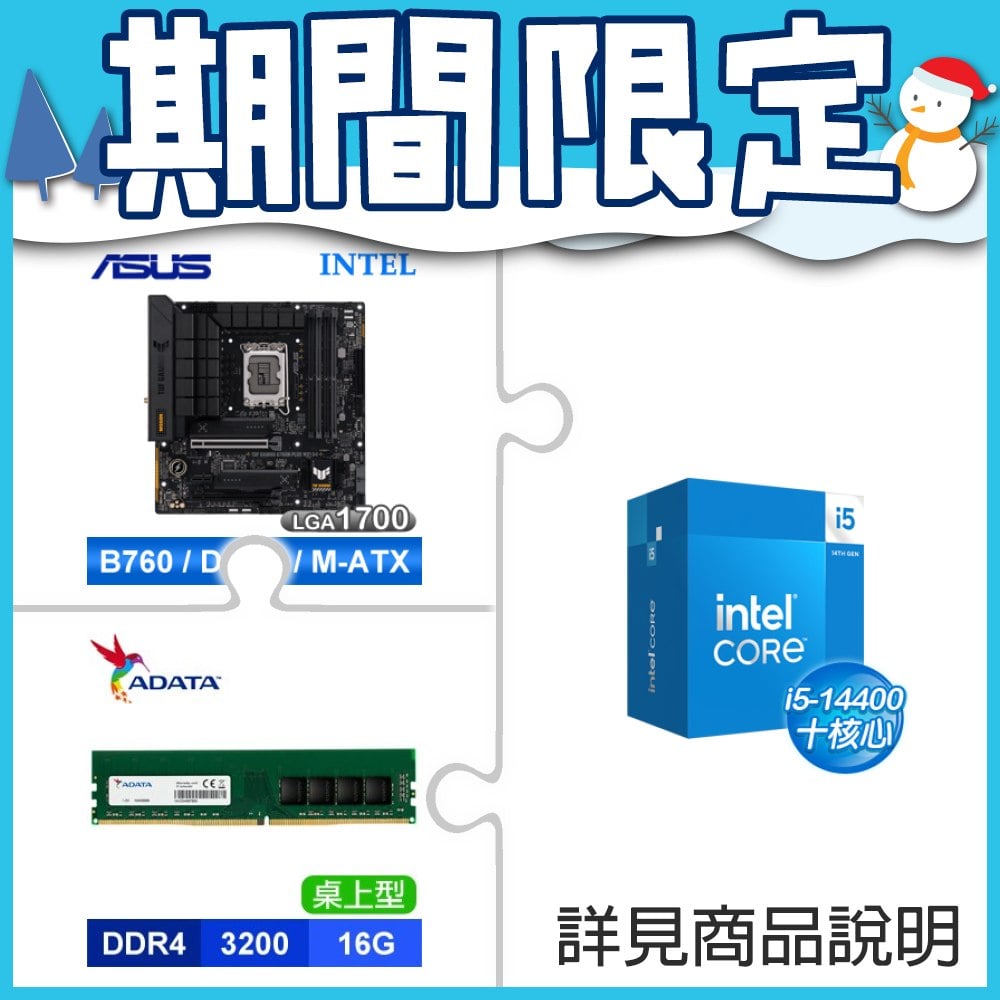 ☆期間限定★ i5-14400+華碩 TUF B760M-PLUS WIFI D4 M-ATX主機板+威剛 DDR4-3200 16G 記憶體