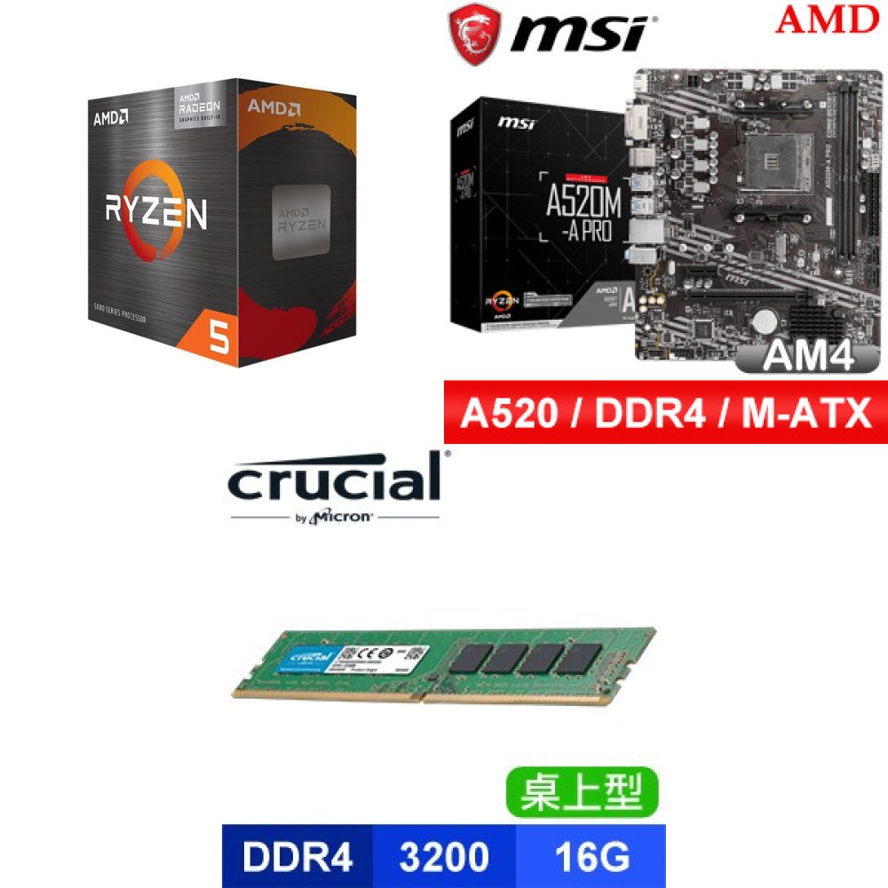☆期間限定★ AMD R5 5500GT+微星 A520M-A PRO M-ATX主機板+美光 Crucial DDR4-3200 16G 記憶體