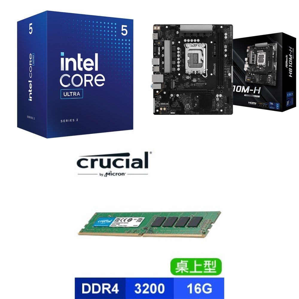 ☆期間限定★ Intel Core Ultra 5 225F+華擎 H810M-H MATX 主機板+美光 Crucial DDR4-3200 16G 記憶體 ★送PC-cillin 2025 雲端版 一年一台 隨機版