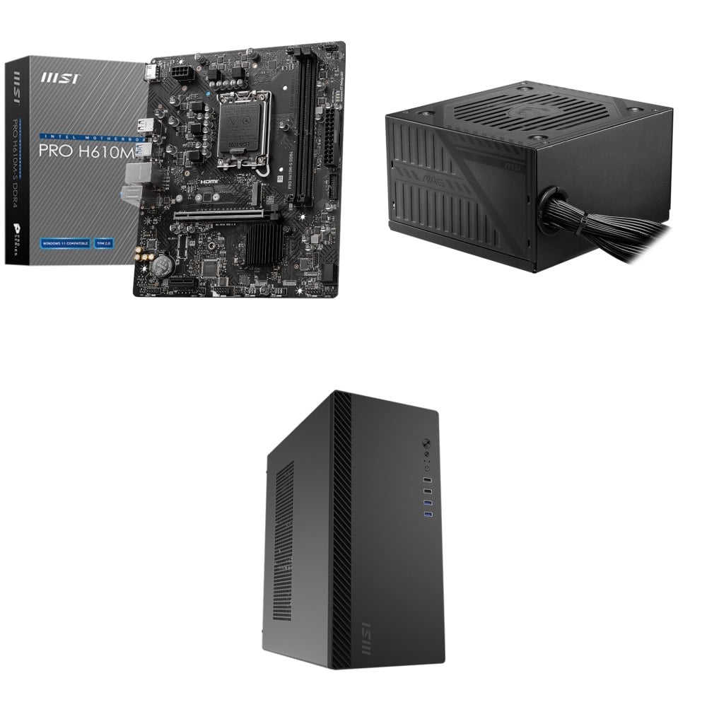 ☆期間限定★ 微星 PRO H610M-S D4 M-ATX主機板+微星 MAG A500DN 電源供應器+微星 PRO SHIELD M100P M-ATX機殼《黑》 ★送威剛 DDR4-3200 8G 記憶體+PC-cillin 2025 雲端版 一年一台 隨機版