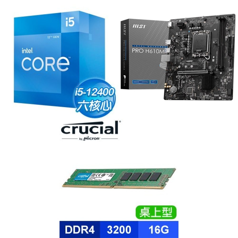 ☆期間限定★ i5-12400+微星 PRO H610M-S D4 M-ATX主機板+美光 Crucial DDR4-3200 16G 記憶體 ★送PC-cillin 2025 雲端版 一年一台 隨機版