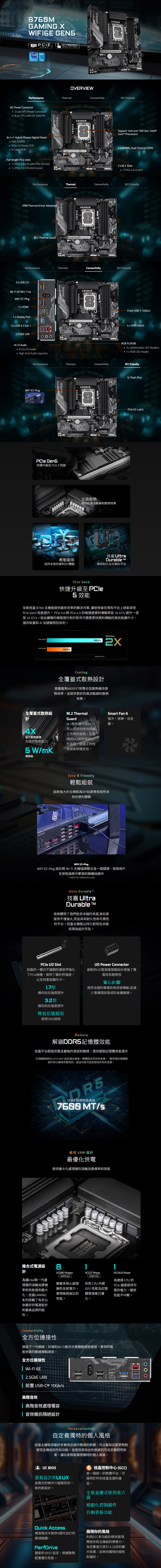 - PCIe UD slot : SMD PCIe 5.0 裝甲強化顯示卡支撐力