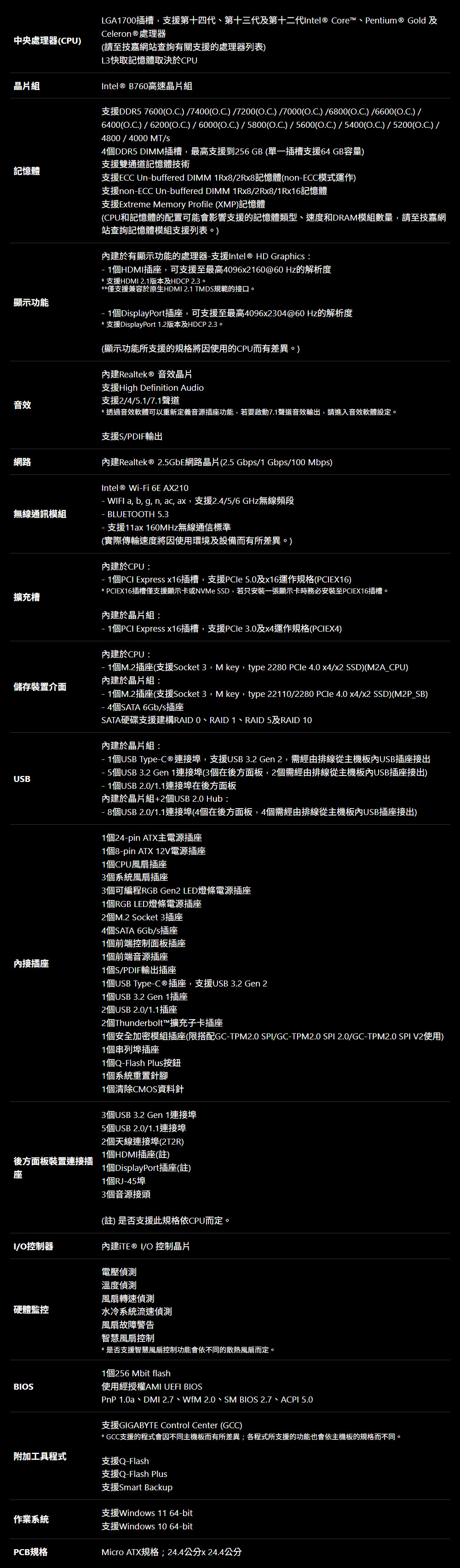 Gigabyte 技嘉 B760M GAMING X WIFI6E GEN5 D5 LGA1700主機板 (MATX/3+2年保)