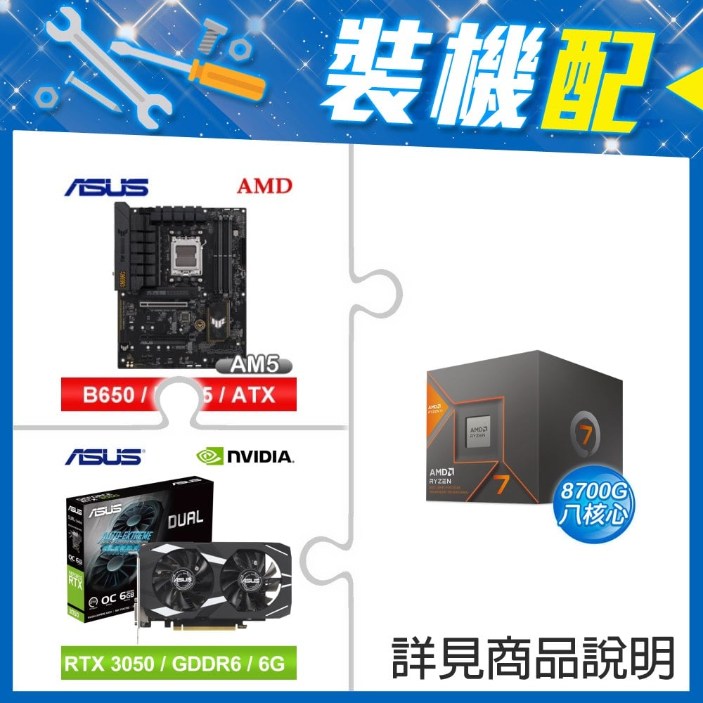 ☆裝機配★ AMD R7 8700G+華碩 TUF GAMING B650-E WIFI ATX主機板+華碩 DUAL-RTX3050-O6G 顯示卡