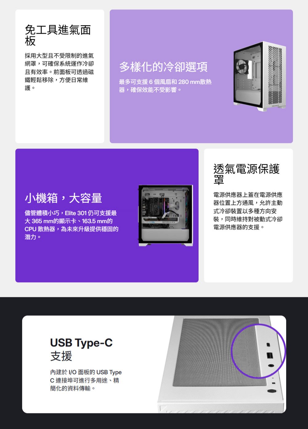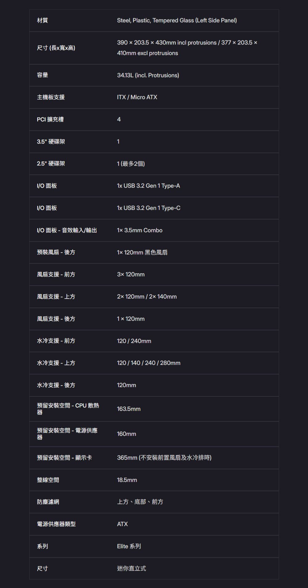 - 支援最大 365 mm的顯示卡、163.5 mm的 CPU 散熱器