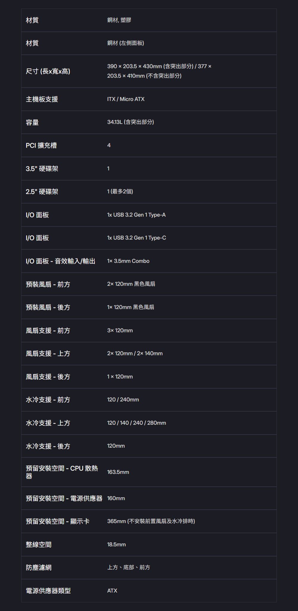 - 支援長達 365mm的顯示卡和 163.5mm的 CPU 散熱器