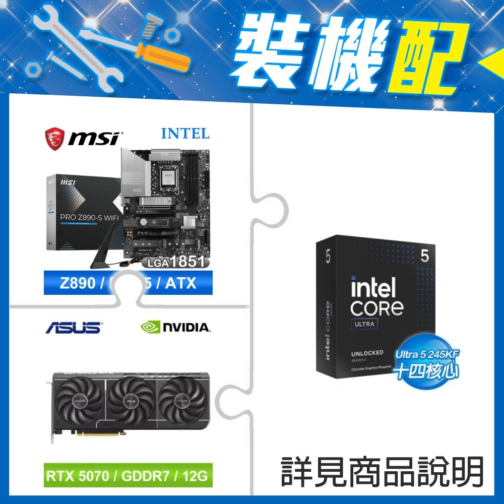 ☆裝機配★ Core U5 245KF+微星 PRO Z890-S WIFI D5 ATX主機板+華碩 PRIME-RTX5070-O12G 顯示卡