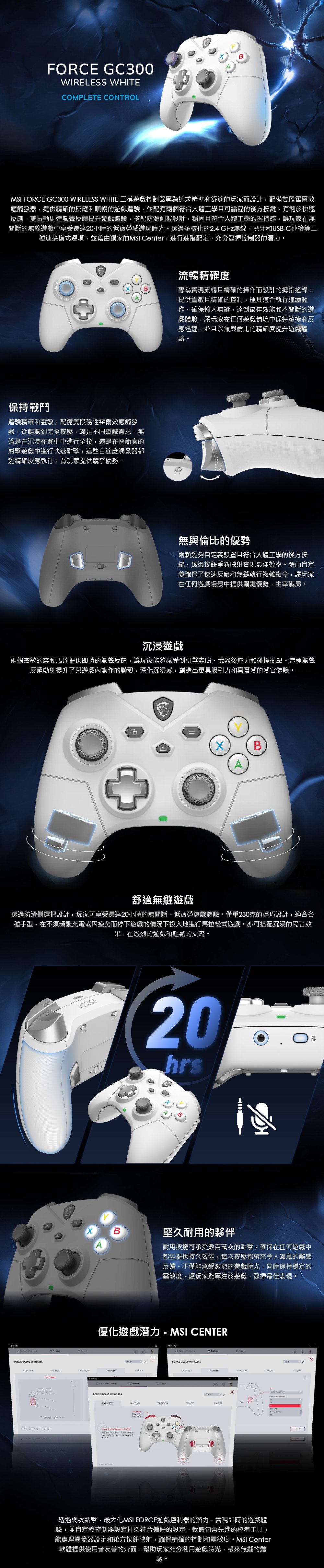MSI 微星 FORCE GC300 WIRELESS WHITE 雙震動回饋 無線三模遊戲搖桿